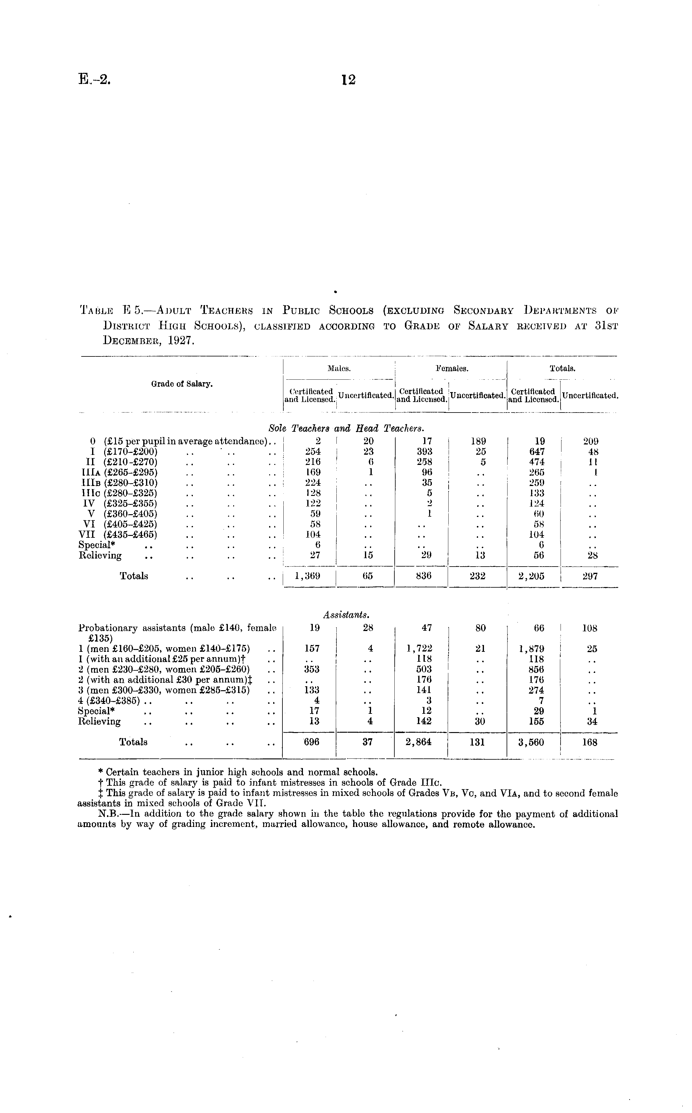 Table E5.—Adult Teachers in Public Schools (excluding Secondary Departments of District High Schools), classified according to Grade of Salary received at 31st December, 1927.