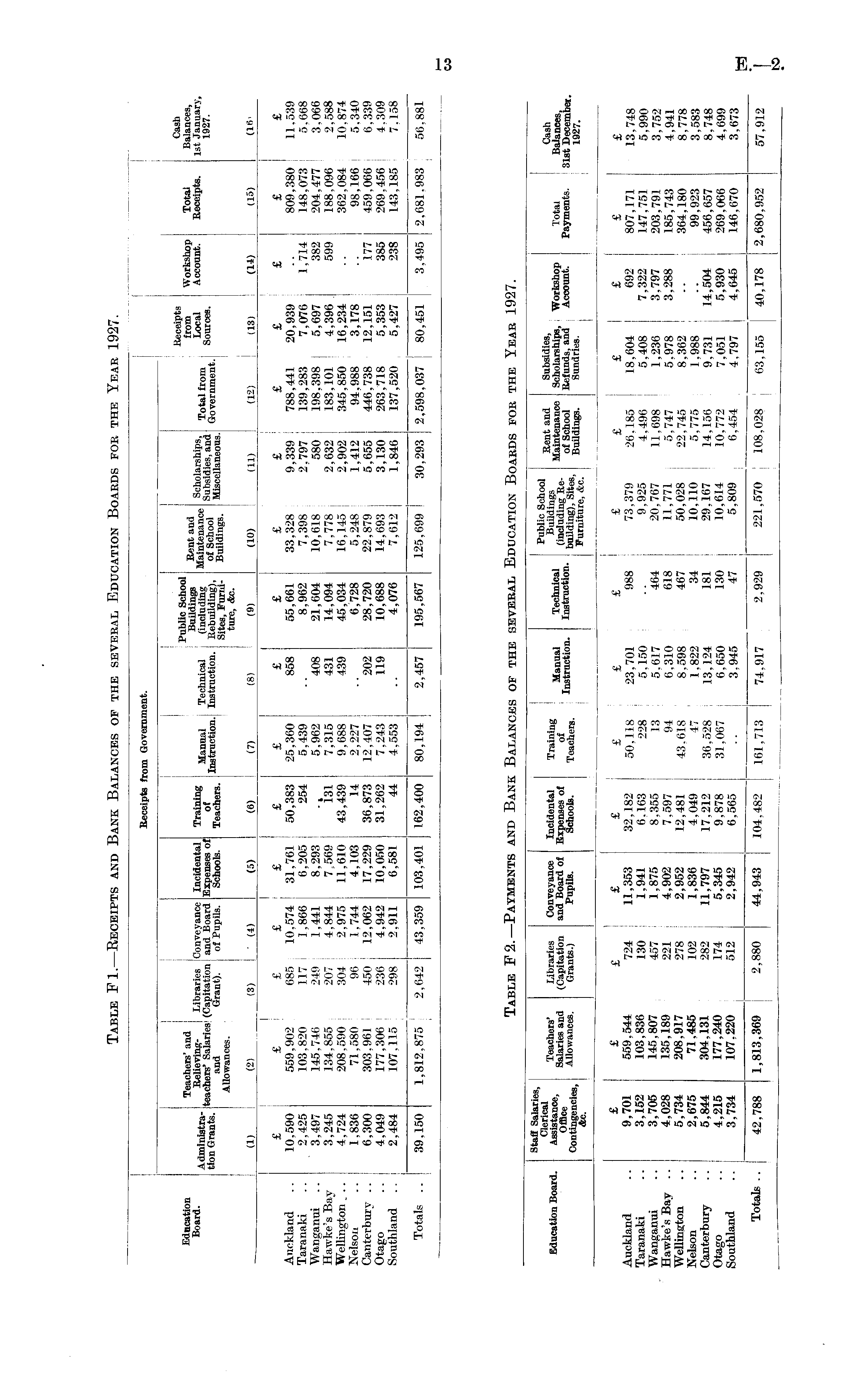 Table F2.—Payments and Bank Balances of the several Education Boards for the Year 1927.