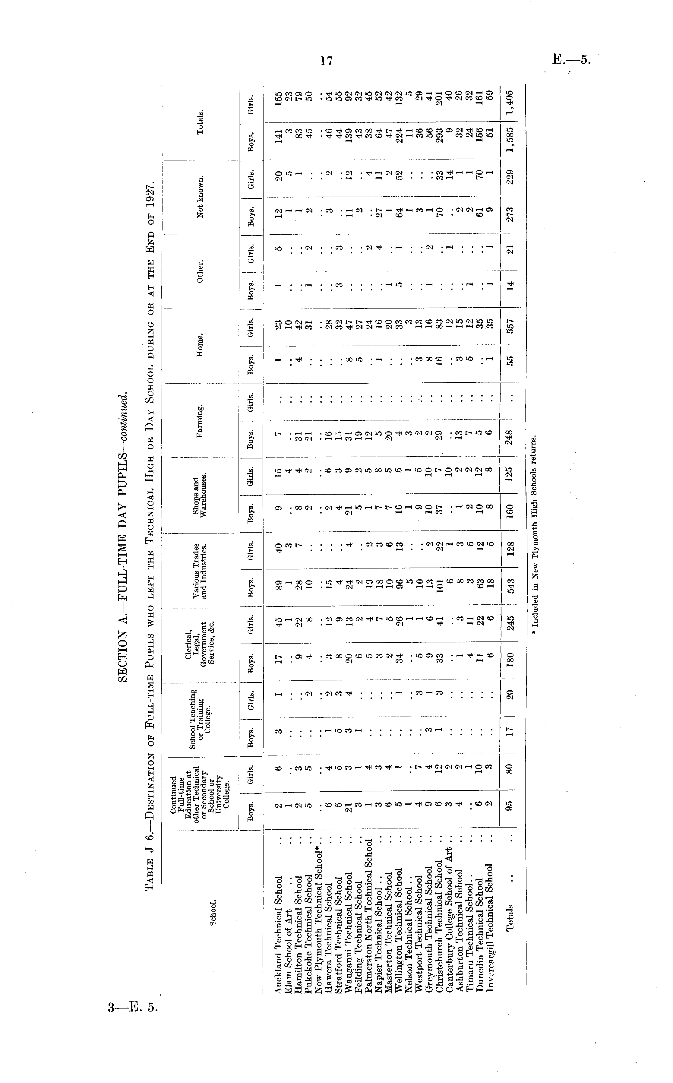 SECTION A.—FULL-TIME DAY PUPILS— continued. Table J 6.—Destination of Full-time Pupils who left the Technical High or Day School during or at the End of 1927.