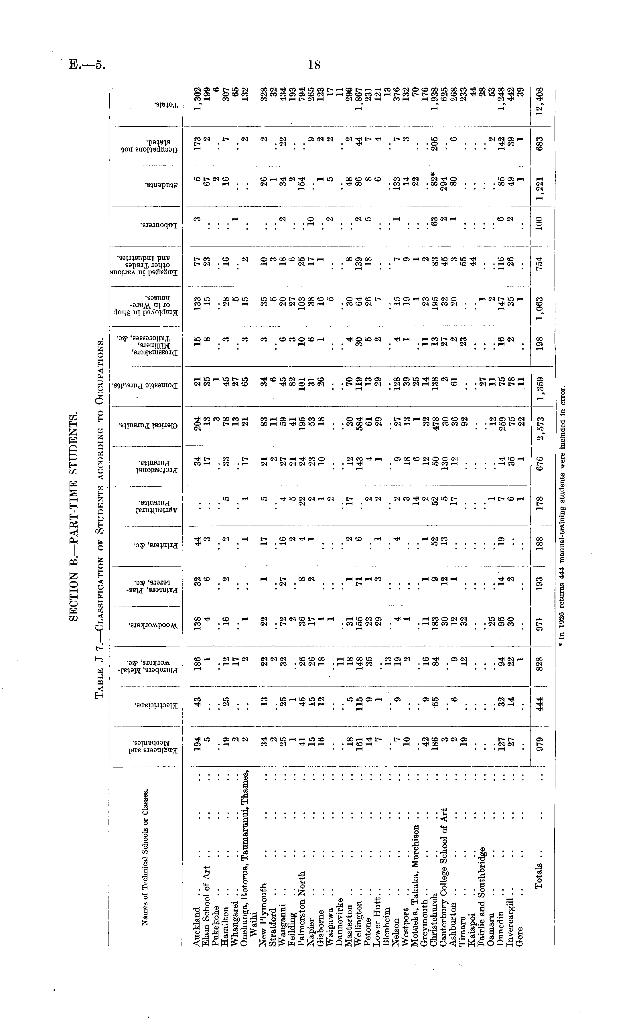 SECTION B.—PART-TIME STUDENTS. Table J 7.—Classification of Students according to Occupations.