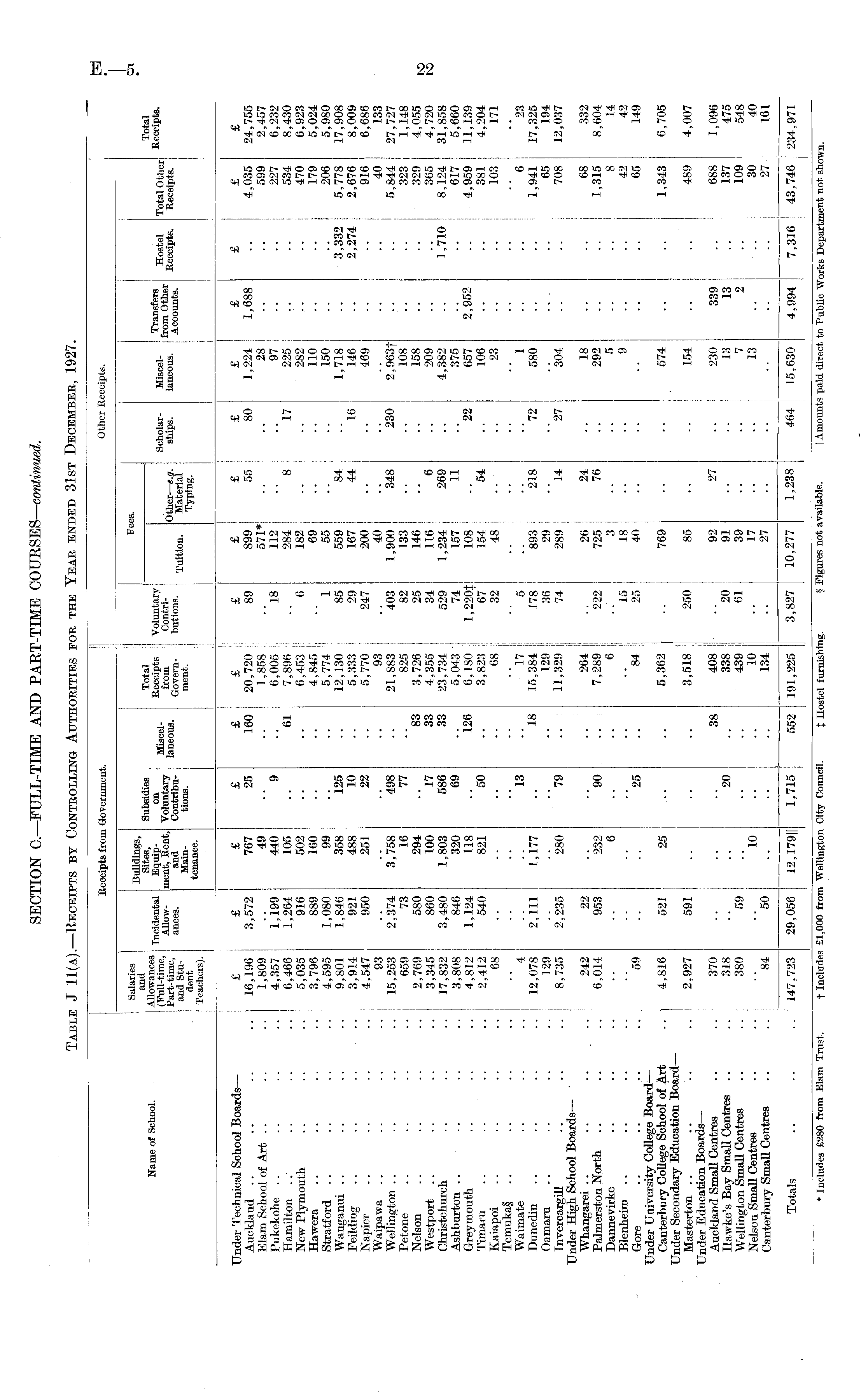 SECTION C.—FULL-TIME AND PART-TIME COURSES— continued. Table J 11(a).—Receipts by Controlling Authorities for the Year ended 31st December, 1927.