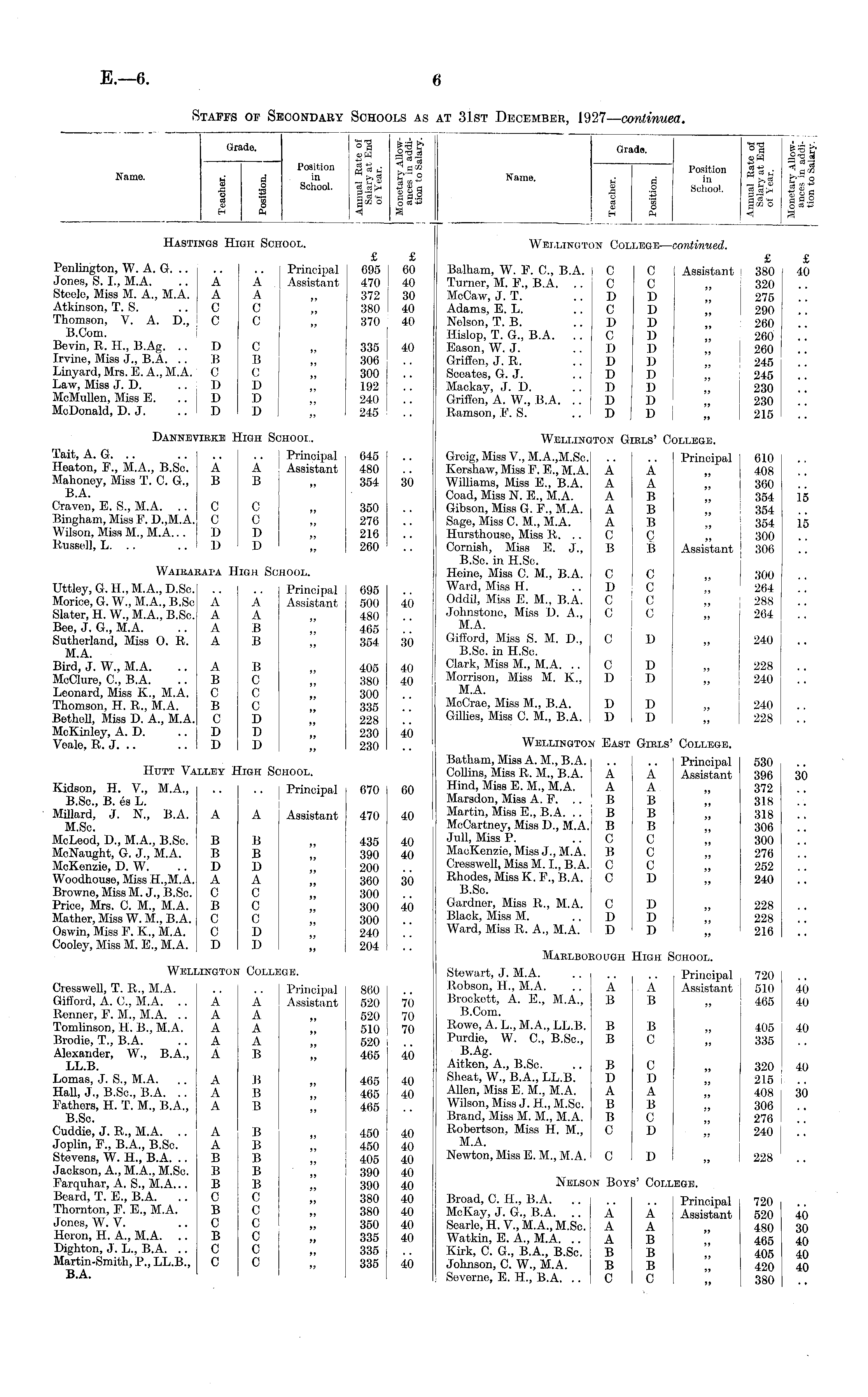 Staffs of Secondary Schools as at 31st December, 1927— continued.