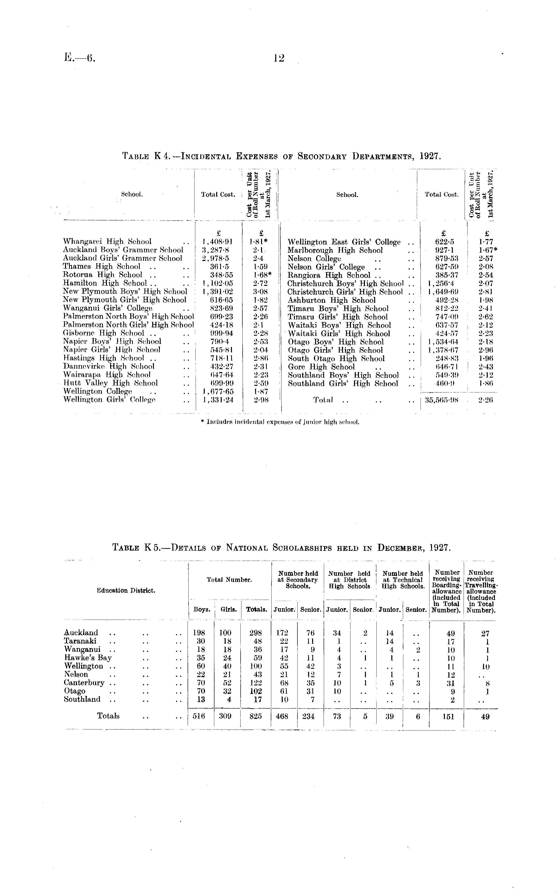 Table K4.—Incidental Expenses of Secondary Departments, 1927.