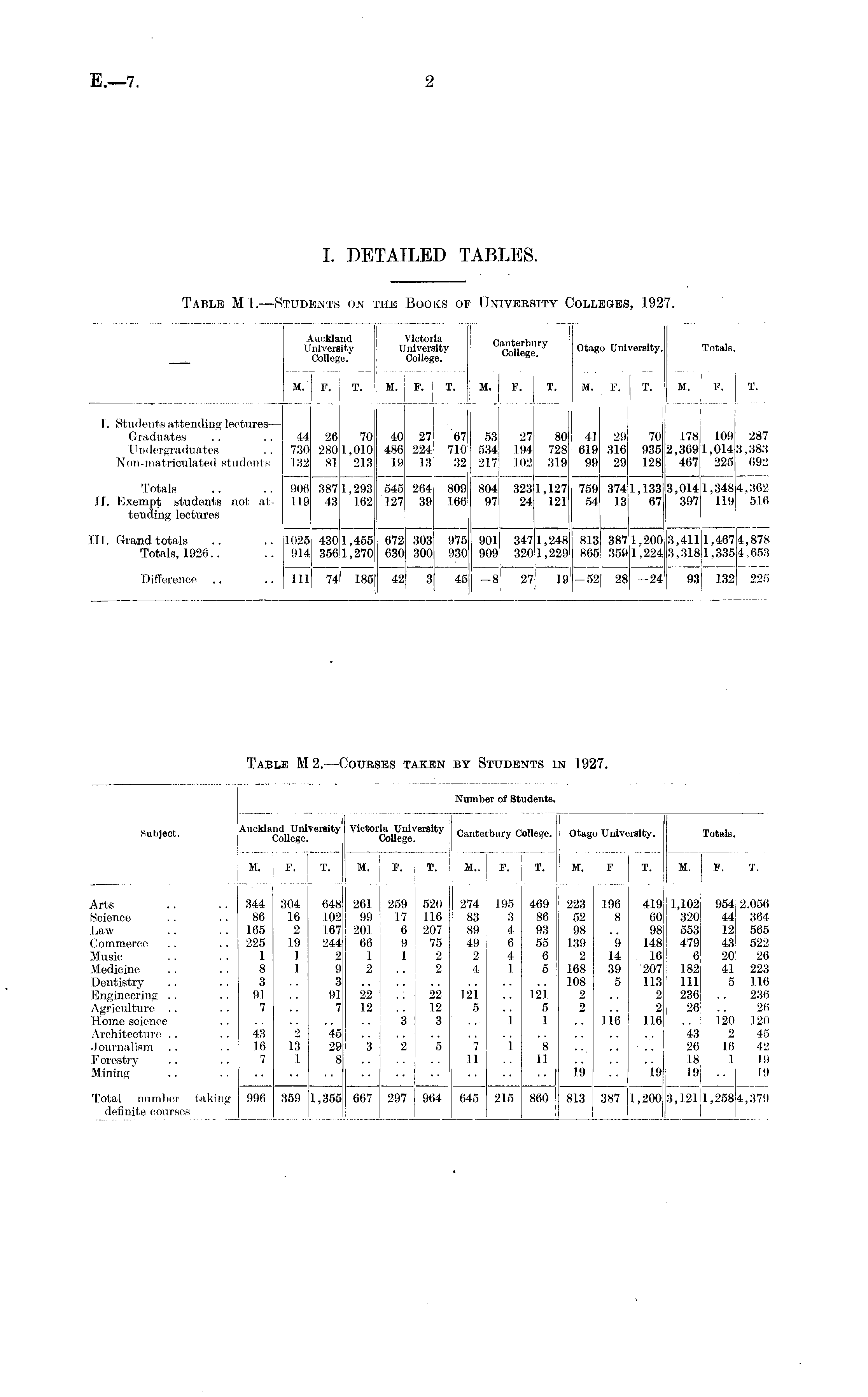 Numbi er of Sti idents. Subject. Aucklai I nd Uni College. iversity Victoria University College. Cantci rbury O illege. Otagi Unive ersity. Totals. Arts Science Law Commerce Music Medicine Dentistry Engineering Agriculture Home science Architecture Journalism Forestry Mining M. 344 86 165 225 1 8 3 91 7 *■ 304 16 2 19 1 I T. 648 102 167 244 2 9 3 91 7 M. , F. T. ; I 1 261 | 259 520 99 i 17 116 201 6 207 66 9 75 1 1 2 2 .. 2 22 .. 22 12 .. 12 .. ' 3 3 M. 274 83 89 49 2 4 uji 5 F. 195 3 4 6 4 1 T. 469 86 93 55 6 5 121 5 1 M. 223 52 98 139 2 168 108 2 2 F 196 8 9 14 39 5 T. 419 60 98 148 16 207 113 2 2 tie M. F. 1,102 954 320 44 553 12 ! 479 43 ! 6 20 182| 41 111 5 236 .. 26 .. 120 43 2 26 16 18 1 19 .. 3,12111,258 I T, 2.056 364 565 522 26 223 116 236 26 120 45 42 19 19 2 13 1 i iif> 43 16 7 45 29 8 3 2 5 7 11 i 8 11 19 19 Total number taking definite courses 996 359 1,355 667 297 964 667 645 215 800 813 387 1,200 4,379