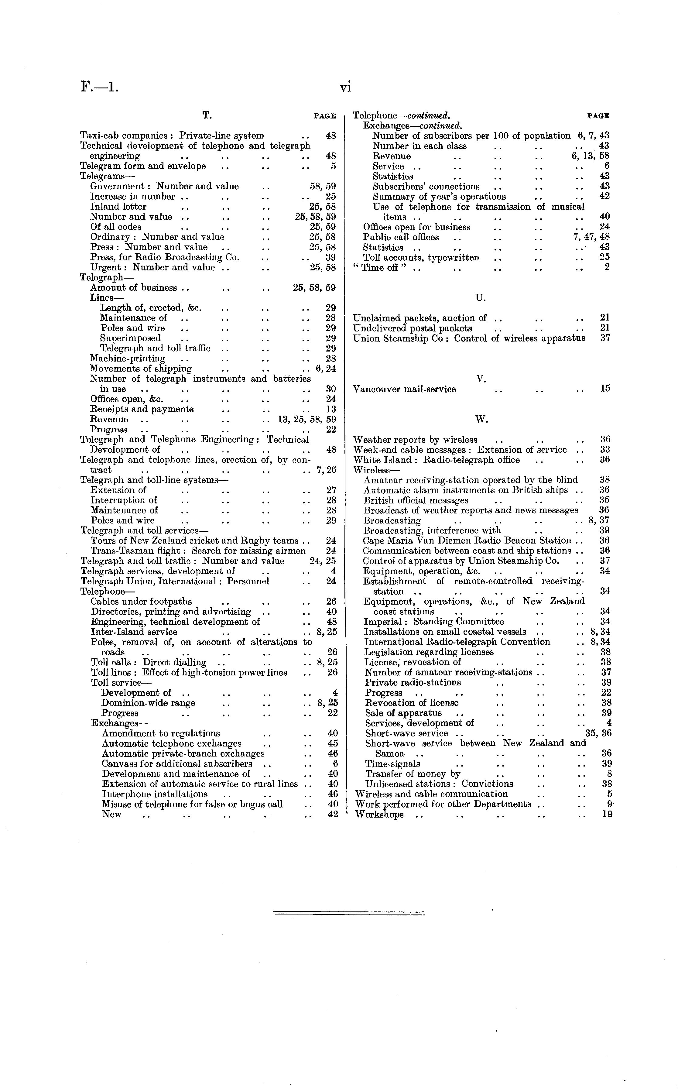 T. pagk Telephone— continued. page Exchanges— continued. Taxi-cab companies : Private-line system .. 48 Number of subscribers per 100 of population 6, 7, 43 Technical development of telephone and telegraph Number in each class .. .. .. 43 engineering .. .. .. 48 Revenue .. .. .. 6, 1.3, 58 Telegram form and envelope .. .. .. 5 Service .. .. .. .. .. 6 Telegrams— Statistics .. .. .. 43 Government: Number and valuo .. 58,59 Subscribers' connections .. .. 43 Increase in number .. .. .. 25 Summary of year's operations .. .. 42 Inland letter .. .. .. 25, 58 Use of telephone for transmission of musical Number and value .. .. .. 25,58,59 items .. .. .. .. 40 Of all codes .. .. .. 25,59 Offices open for business .. .. 24 Ordinary : Number and value .. 25, 58 Public call offices .. .. .. 7, 47, 48 Press : Number and value .. .. 25, 58 Statistics .. .. .. .. .. 43 Press, for Radio Broadcasting Co. .. .. 39 Toll accounts, typewritten .. .. 25 Urgent: Number and value .. .. 25, 58 " Time off " .. .. .. .. .. 2 Telegraph— Amount of business .. .. .. 25, 58, 59 Lines — U. Length of, erected, &c. .. .. 29 Maintenance of .. .. 28 Unclaimed packets, auction of .. .. .. 21 Poles and wire .. .. .. 29 Undelivered postal packets .. .. 21 Superimposed .. .. .. 29 Union Steamship Co: Control of wireless apparatus 37 Tolegraph and toll traffic .. .. 29 Machine-printing .. .. .. 28 Movements of shipping .. .. .. 6, 24 Number of telegraph instruments and batteries V. in use .. .. .. .. 30 Vancouver mail-service .. .. .. 15 Offices open, &c. .. .. .. 24 Receipts and payments .. .. .. 13 Revenue .. .. .. .. 13, 25, 58, 59 W. Progress .. .. .. .. 22 Telegraph and Telephone Engineering : Technical Weather reports by wireless .. .. 36 Development of .. .. .. 48 Week-end cable messages: Extension of service .. 33 Telegraph and telephone lines, erection of, by eon- White Island : Radio-telegraph office .. .. 36 tract .. .. .. .. .. 7,26 Wireless — Telegraph and. toll-line systems— Amateur receiving-station operated by the blind 38 Extension of .. .. .. 27 Automatic alarm instruments on British ships .. 36 Interruption of .. .. .. 28 British official messages .. .. 35 Maintenance of .. .. .. 28 Broadcast of weather reports and news messages 36 Poles and wire .. .. .. 29 Broadcasting .. .. .. .. 8,37 Telegraph and toll services— Broadcasting, interference with .. .. 39 Tours of New Zealand cricket and Rugby teams .. 24 Cape Maria Van Diemen Radio Beacon Station .. 36 Trans-Tasman flight : Search for missing airmen 24 Communication between coast and ship stations .. 36 Tolegraph and toll traffic : Number and value 24, 25 Control of apparatus by Union Steamship Co. .. 37 Telegraph services, development of .. .. 4 Equipment, operation, &o. .. .. 34 Telegraph Union, International: Personnel .. 24 Establishment of remote-controlled receivingTelephone— station .. .. .. .. 34 Cables under footpaths .. .. 26 Equipment, operations, &c, of New Zealand Directories, printing and advertising .. .. 40 coast stations .. .. .. 34 Engineering, technical development of 48 Imporial: Standing Committee .. . . 34 Inter-Island service .. .. .. 8, 25 Installations on small coastal vessels .. .. 8,34 Poles, removal of, on acoount of alterations to International Radio-telegraph Convention .. 8,34 roads .. .. .. .. 26 Legislation regarding licenses .. .. 38 Toll calls : Direct dialling .. .. .. 8, 25 License, revocation of .. .. 38 Toll lines : Effect of high-tension power lines .. 26 Number of amateur receiving-stations .. .. 37 Toll service— Private radio-stations .. .. 39 Development of .. .. .. .. 4 Progress .. .. .. .. 22 Dominion-wide range .. .. .. 8,25 Revocation of license .. .. 38 Progress .. .. .. 22 Sale of apparatus .. .. .. 39 Exchanges — Services, development of .. .. .. 4 Amendment to regulations .. .. 40 Short-wave service .. .. .. 35, 36 Automatic telephone exchanges .. .. 45 Short-wave service between New Zealand and Automatic private-branch exchanges .. 46 Samoa .. .. .. .. 36 Canvass for additional subscribers .. .. 6 Time-signals .. .. .. 39 Development and maintenance of .. 40 Transfer of money by .. .. .. 8 Extension of automatic service to rural lines .. 40 Unlicensed stations : Convictions .. .. 38 Interphone installations .. .. 46 Wireless and cable communication .. .. 5 Misuse of telephone for false or bogus call .. 40 Work performed for other Departments .. .. 9 New .. .. .. .. 42 Workshops .. .. .. .. 19