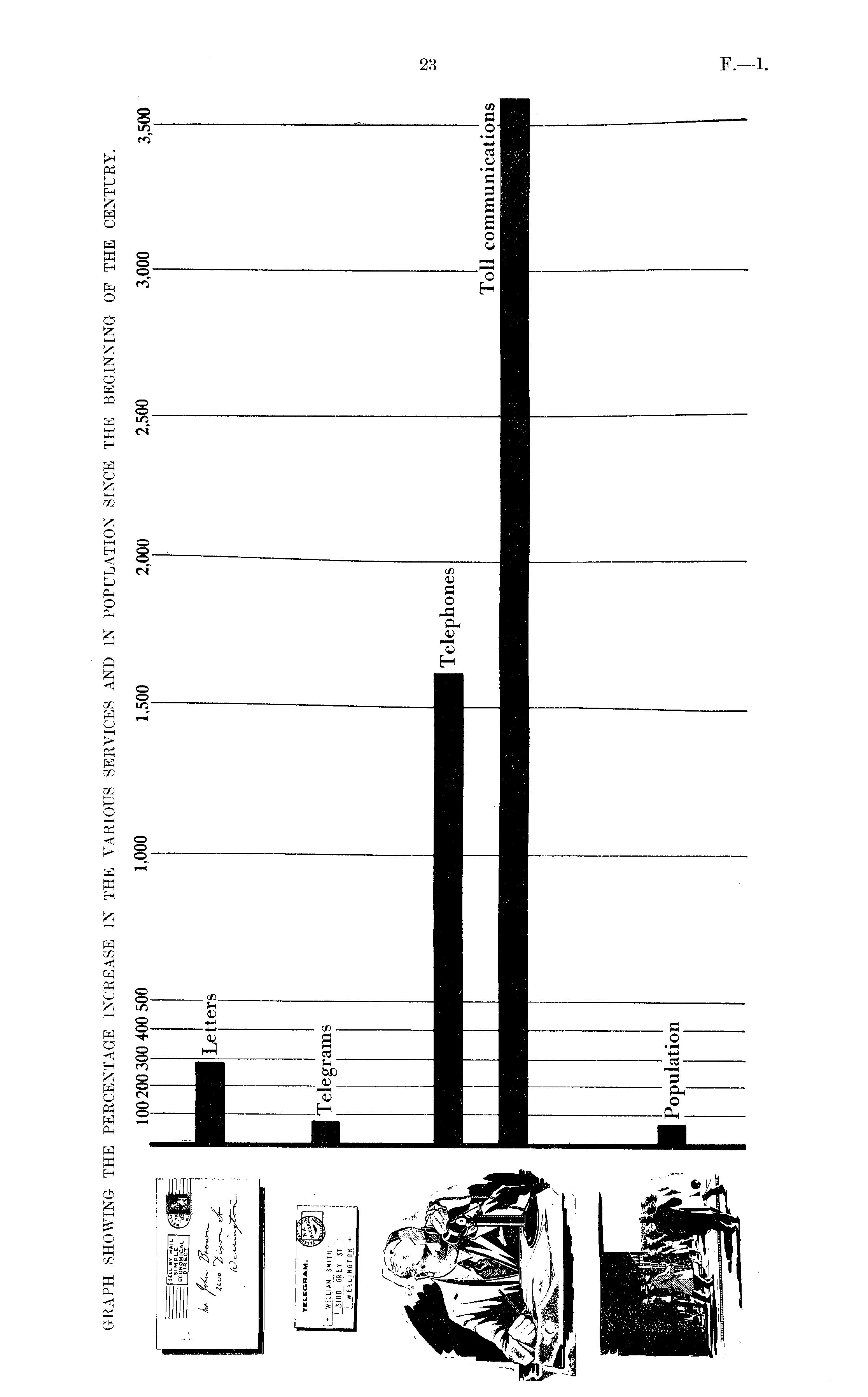 GRAPH SHOWING THE PERCENTAGE INCREASE IN THE VARIOUS SERVICES AND IN POPULATION SINCE THE BEGINNING OF THE CENTURY.