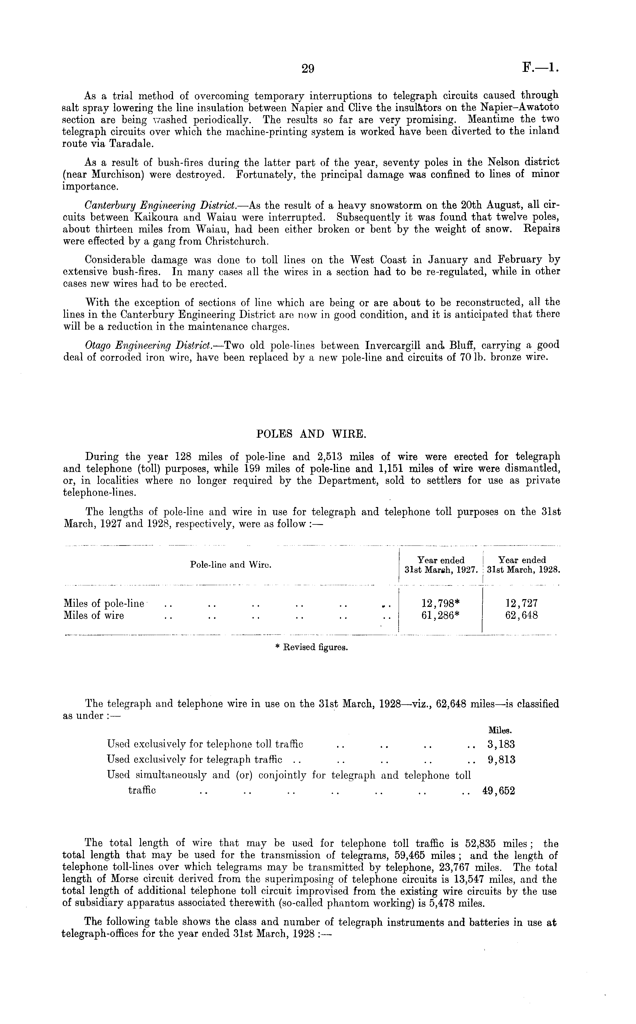 [iles of pole-line lies of wire Pole-line and Wire. Year ended Year ended 31st Marsh, 1927. 31st March, 1928. 12,798* 12,727 61,286* 62,648 * Revisod figures.