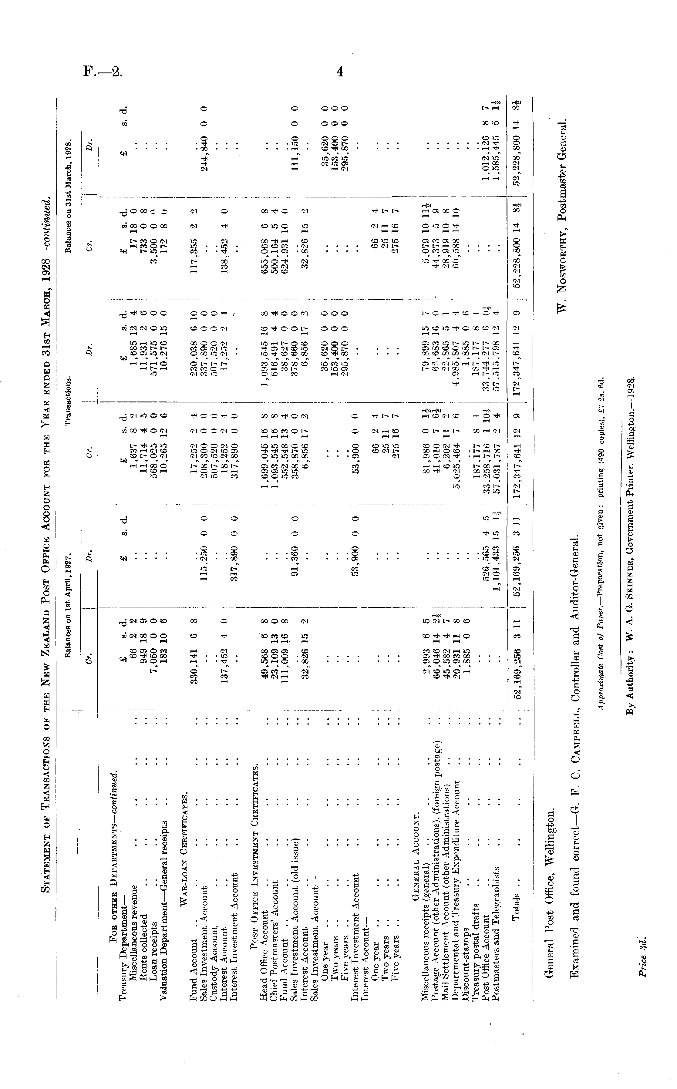 Statement of Transactions of the New Zealand Post Office Account for the Year ended 31st March, 1928— continued.