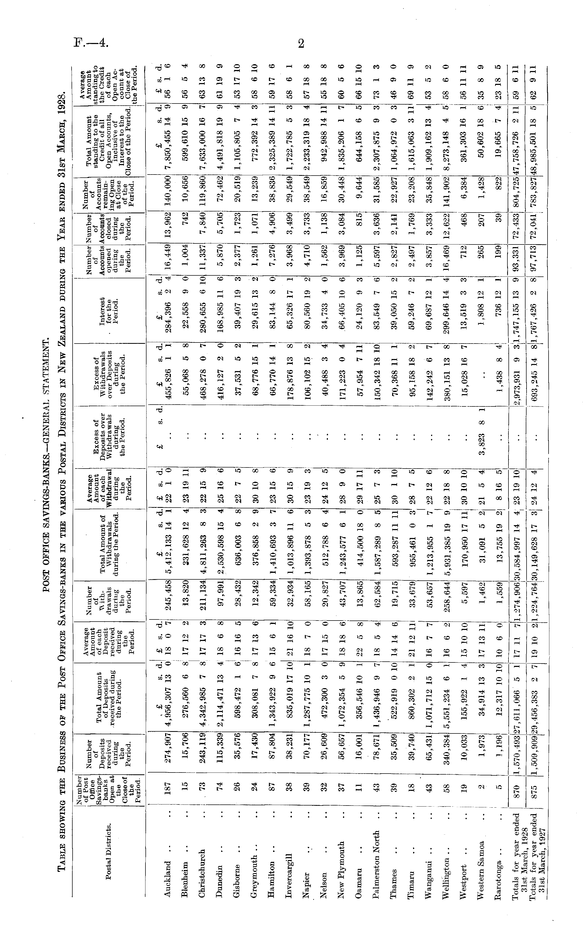 POST OFFICE SAVINGS-BANKS.— GENERAL STATEMENT. Table showing the Business of the Post Office Savings-banks in the various Postal Districts in New Zealand during the Year ended 31st March, 1928.