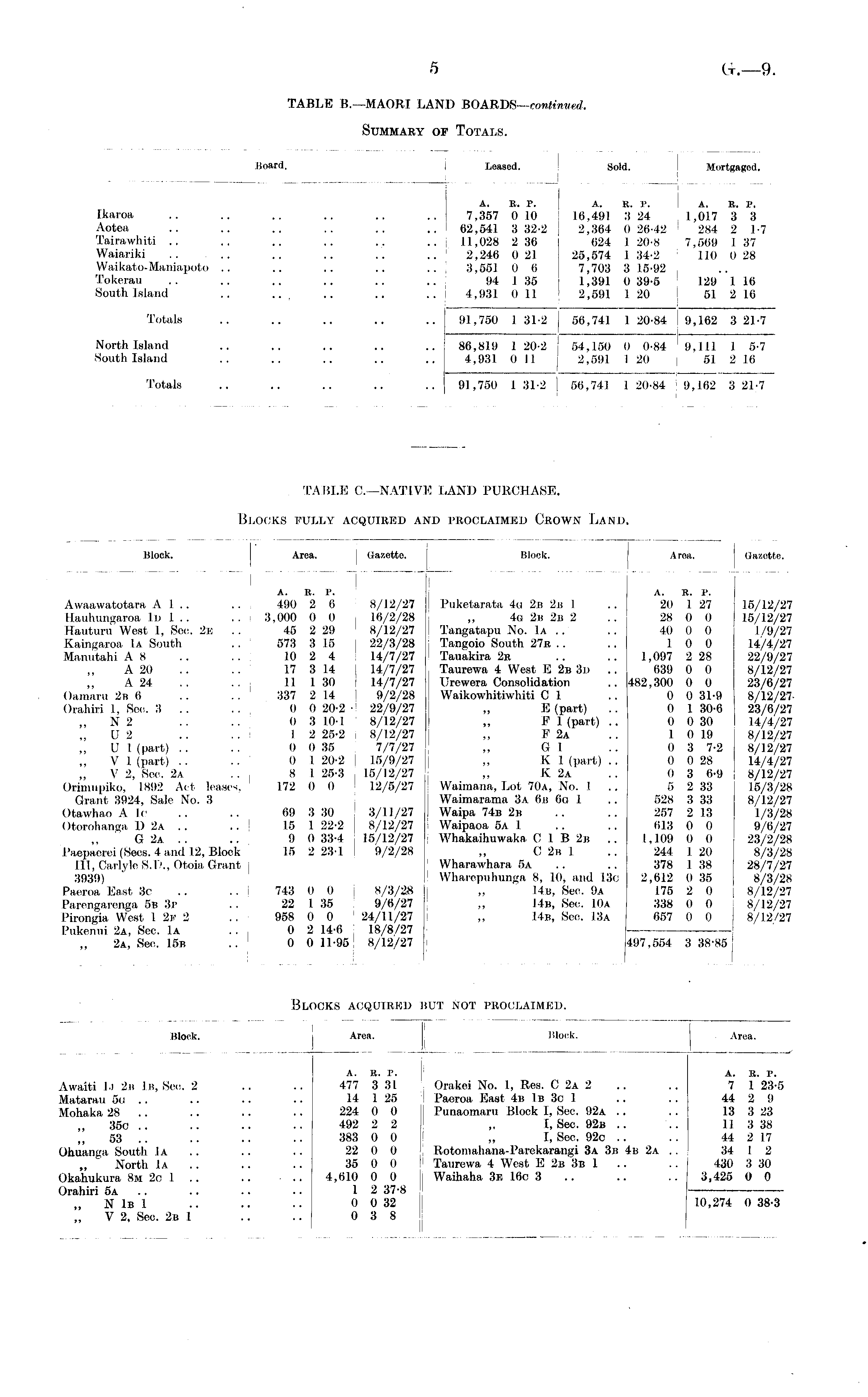 TABLE B.—MAORI LAND BOARDS— continued. Summary of Totals.