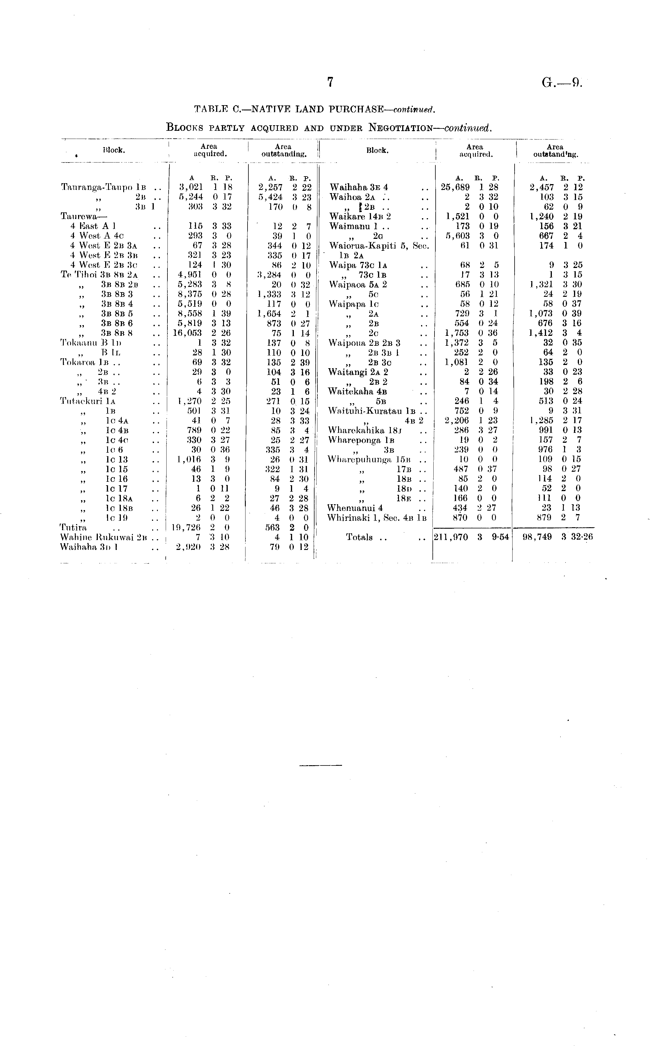 TABLE C.—NATIVE LAND PURCHASE— continued. Blocks partly acquired and under Negotiation— continued.