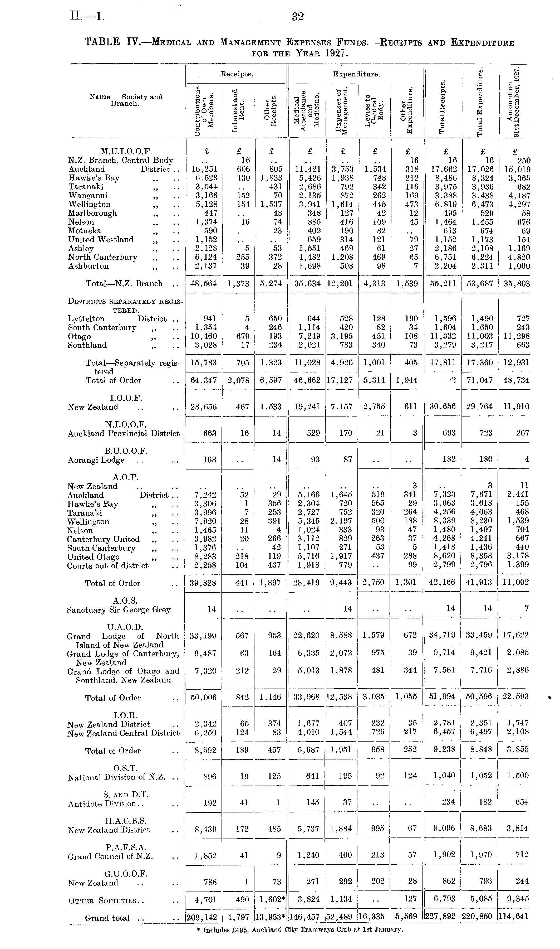 TABLE IV.—Medical and Management Expenses Funds.—Receipts and Expenditure for the Year 1927.