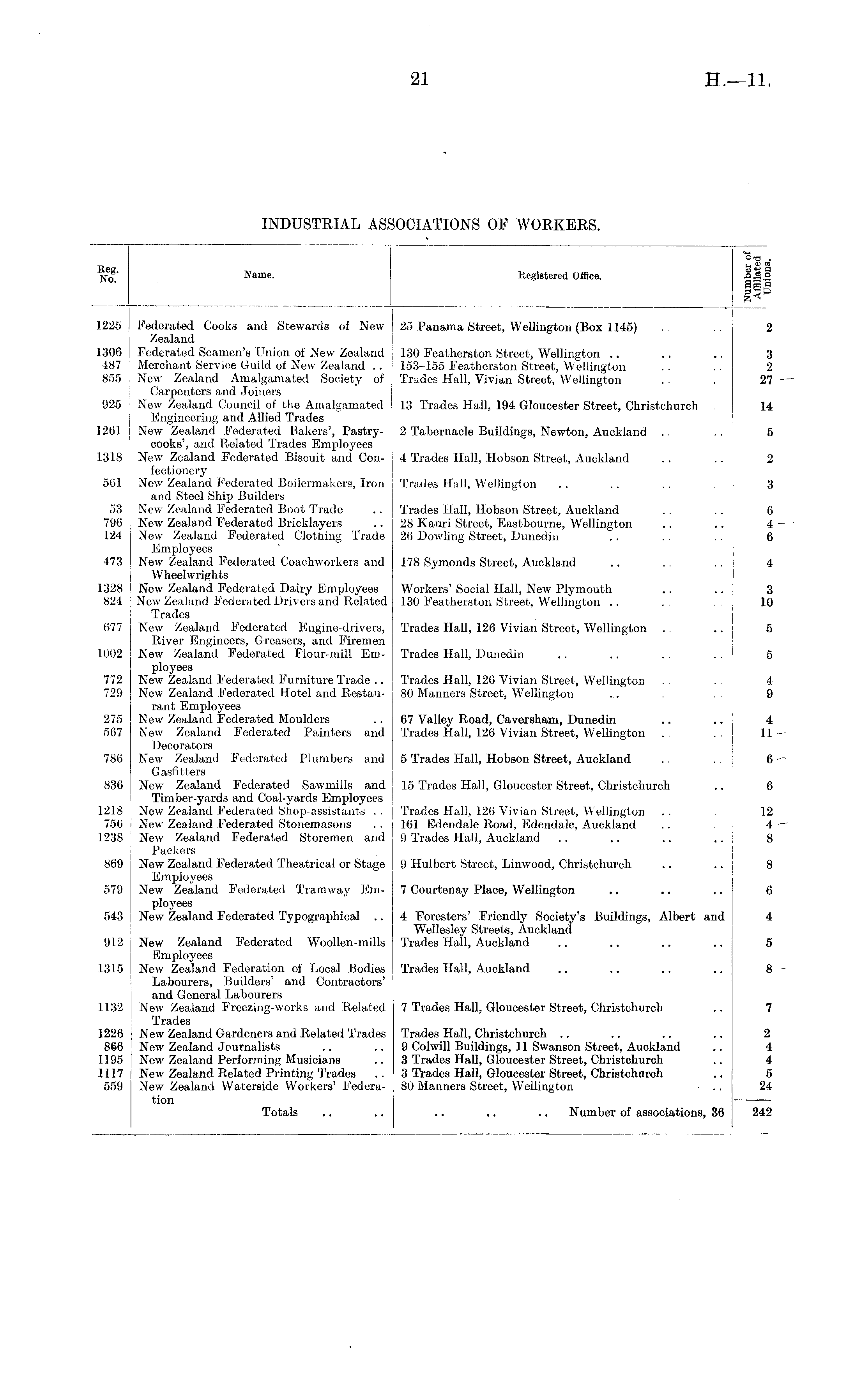 "o-o . T? h w Name. llegistered Office. l|e 1226 Federated Cooks and Stewards of New 25 Panama Street, Wellington (Box 1145) . . 2 Zealand 1306 | Federated Seamen's Union of New Zealand 130 Featherston Street, Wellington .. .. .. 3 487 Merchant Service Guild of New Zealand .. 153-155 Featherston Street, Wellington .. 2 855 New Zealand Amalgamated Society of Trades Hall, Vivian Street, Wellington .. . 27 Carpenters and Joiners 925 New Zealand Council of the Amalgamated 13 Trades Hall, 194 Gloucester Street, Christchurcli 14 Engineering and Allied Trades 1261 New Zealand Federated Bakers', Pastry- 2 Tabernacle Buildings, Newton, Auckland . . , . 5 cooks', and Related Trades Employees 1318 | New Zealand Federated Biscuit and Con- 4 Trades Hall, Hobson Street, Auckland .. .. 2 fectionery 561 New Zealand Federated Boilermakers, Iron Trades Hall, Wellington .. .. 3 and Steel Ship Builders 53 i New Zealand Federated Boot Trade .. Trades Hall, Hobson Street, Auckland .. .. 6 796 New Zealand Federated Bricklayers .. 28 Kauri Street, Eastbourne, Wellington .. .. 4 124 i New Zealand Federated Clothing Trade 26 Bowling Street, Dunedin .. 6 Employees 473 New Zealand Federated Coachworkers and 178 Symonds Street, Auckland .. . . .. 4 Wheelwrights 1328 ' New Zealand Federated Dairy Employees Workers' Social Hall, New Plymouth .. .. 3 824 | New Zealand Federated Drivers and Related 130 Featherston Street, Wellington .. . 10 Trades 677 New Zealand Federated Engine-drivers, Trades Hall, 126 Vivian Street, Wellington . . .. 5 River Engineers, Greasers, and Firemen 1002 New Zealand Federated Flour-mill Em- Trades Hall, Dunedin .. .. . . . . 5 ployees 772 New Zealand Federated Furniture Trade .. Trades Hall, 126 Vivian Street, Wellington .. 4 729 New Zealand Federated Hotel and Restau- 80 Manners Street, Wellington .. 9 rant Employees 275 New Zealand Federated Moulders . . 67 Valley Boad, Caversham, Dunedin .. .. 4 567 New Zealand Federated Painters and Trades Hall, 126 Vivian Street, Wellington . 11 Decorators 786 New Zealand Federated Plumbers and 5 Trades Hall, Hobson Street, Auckland . . 6 Gasfitters 836 New Zealand Federated Sawmills and 15 Trades Hall, Gloucester Street, Christchurch .. 6 Timber-yards and Coal-yards Employees 1218 New Zealand Federated Shop-assistants .. Trades Hall, 126 Vivian Street, Wellington .. 12 756 | New Zealand Federated Stonemasons .. 161 Edendale Road, Edendale, Auckland .. . 4 1238 New Zealand Federated Storemen and 9 Trades Hall, Auckland .. .. .. .. 8 Packers 869 New Zealand Federated Theatrical or Stage 9 Hulbert Street, Linwood, Christchurch .. .. 8 Employees 579 New Zealand Federated Tramway Em- 7 Courtenay Place, Wellington .. .. .. 6 ployees 543 | New Zealand Federated Typographical .. 4 Foresters' Friendly Society's Buildings, Albert and 4 Wellesley Streets, Auckland 912 New Zealand Federated Woollen-mills Trades Hall, Auckland .. .. .. .. 5 Employees 1315 New Zealand Federation of Local Bodies Trades Hall, Auckland .. .. .. .. 8 Labourers, Builders' and Contractors' and General Labourers 1132 I New Zealand Freezing-works and Related 7 Trades Hall, Gloucester Street, Christchurch .. 7 Trades 1226 ; New Zealand Gardeners and Related Trades Trades Hall, Christchurch .. .. .. .. 2 866 New Zealand Journalists .. .. 9 Colwill Buildings, 11 Swanson Street, Auckland .. 4 1195 i New Zealand Performing Musicians .. 3 Trades Hall, Gloucester Street, Christchurch .. 4 1117 New Zealand Related Printing Trades .. 3 Trades Hall, Gloucester Street, Christchurch .. 5 559 New Zealand Waterside Workers' Fed era- 80 Manners Street, Wellington 24 tion Totals .. .. .. .. .. Number of associations, 36 242
