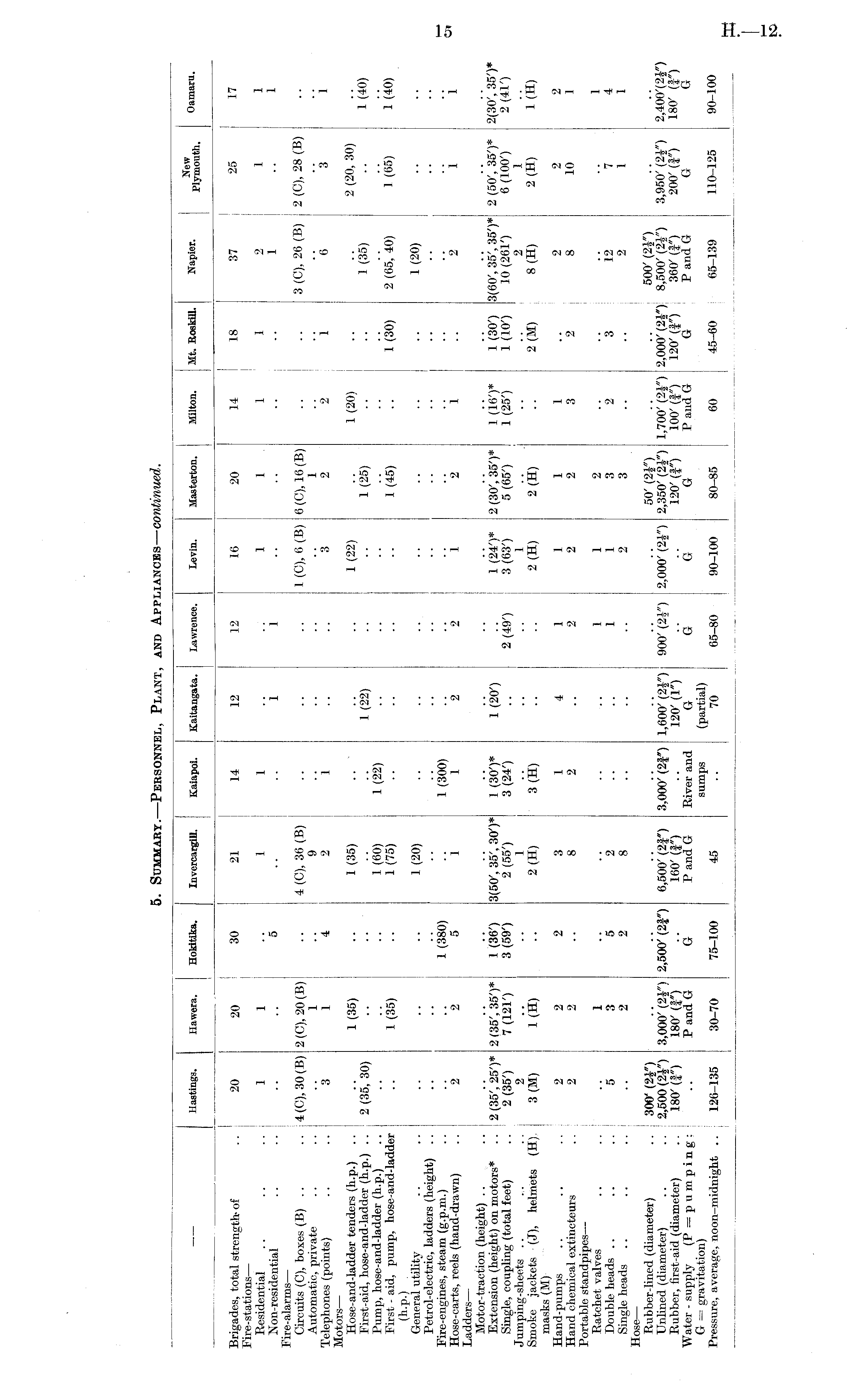 5. Summary.—Personnel, Plant, and Appliances— continued.