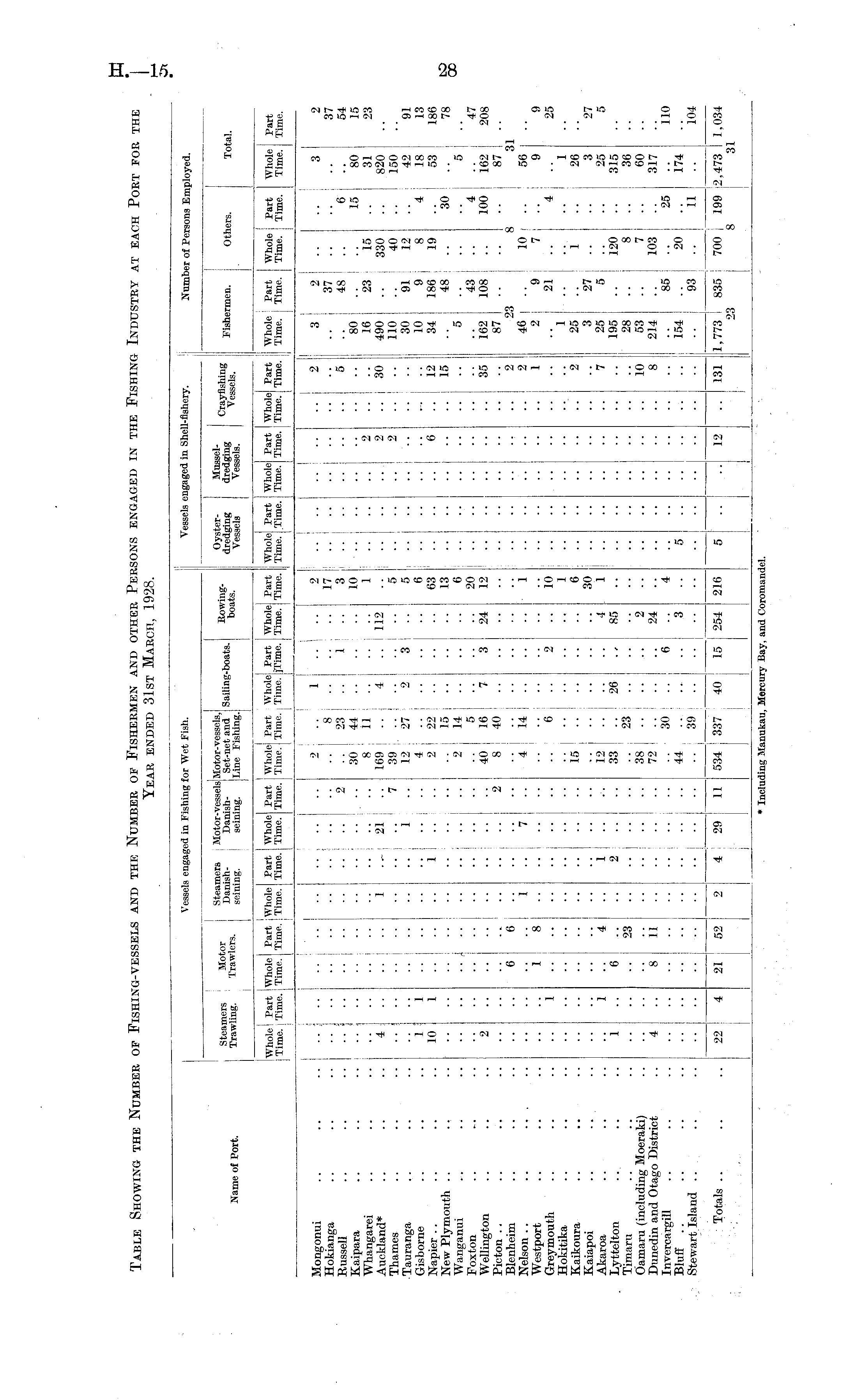 Table Showing the Number of Fishing-vessels and the Number of Fishermen and other Persons engaged in the Fishing Industry at each Port for the Year ended 31st March, 1928.