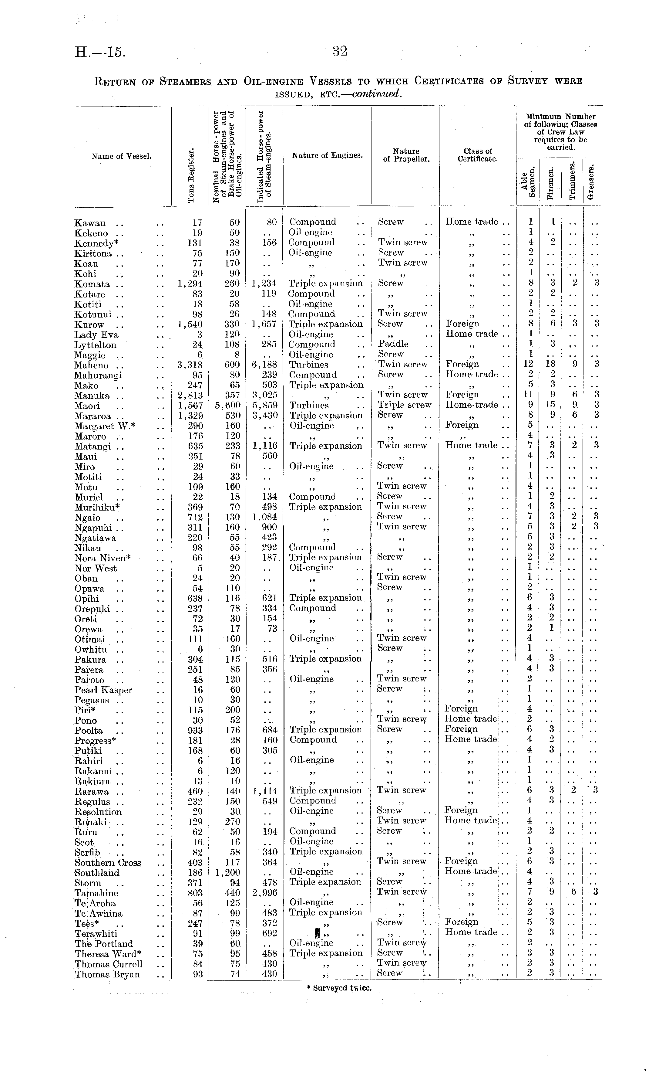 Return of Steamers and Oil-engine Vessels to which Certificates of Survey were issued, etc. —continued.