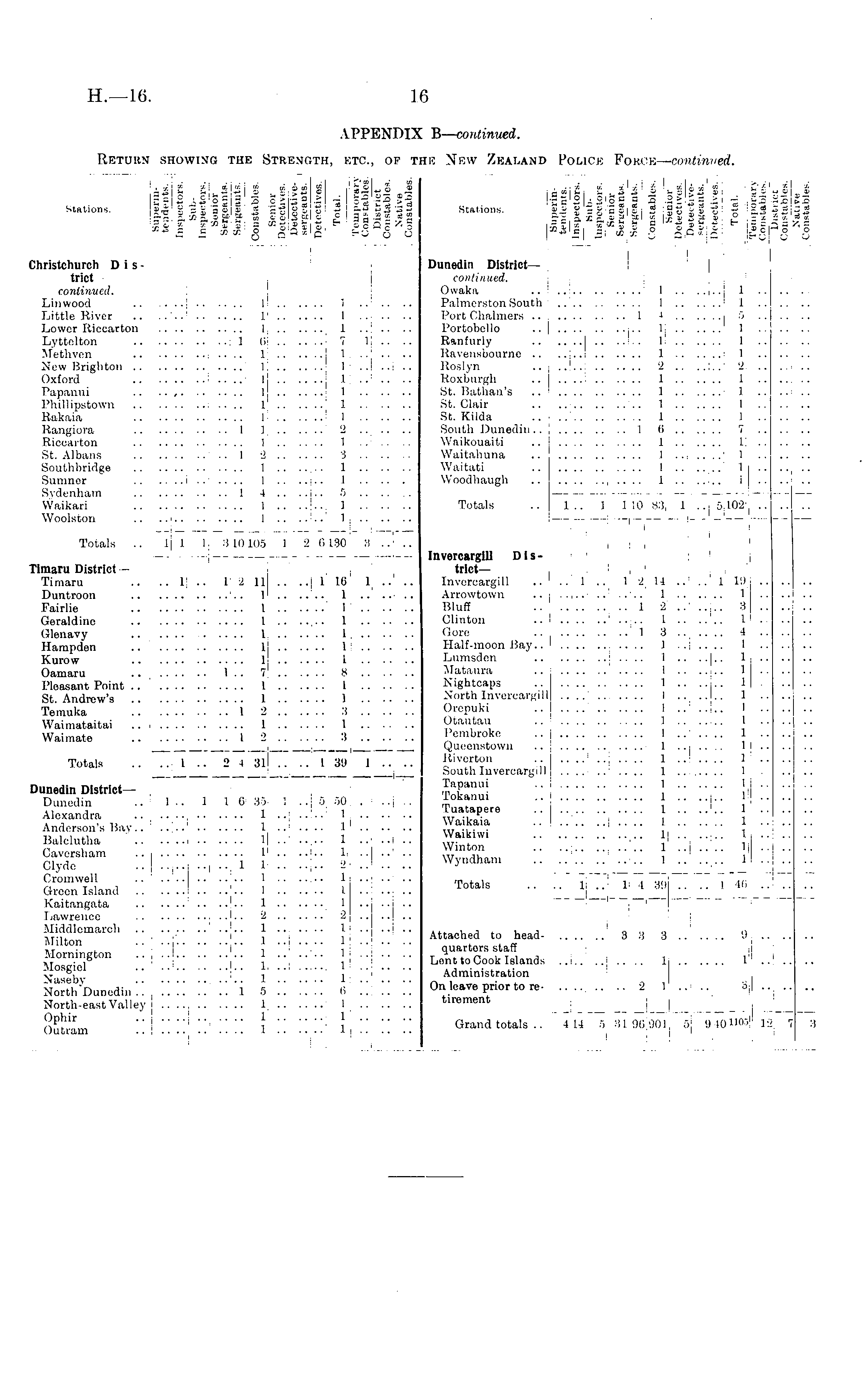 APPENDIX B—continued. Return showing the Strength, etc., of the New Zealand Police Force—continued.
