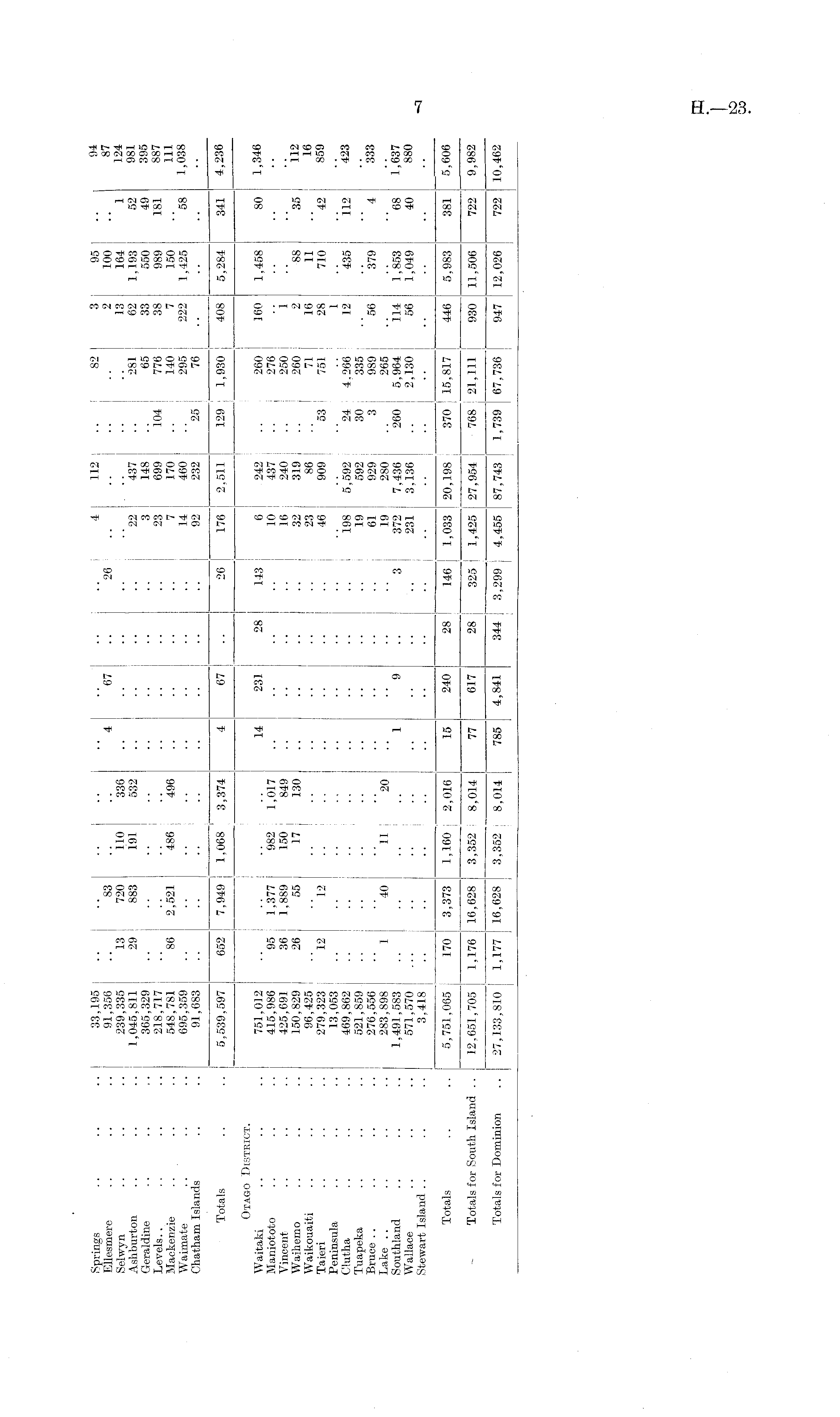Springs .. .. .. 33,195 .. .. .. .. .. .. .. .. 4 112 82 3 95 94 Ellesmere .. .. .. 91,356 .. 83 .. 4 67 26 .. .. .. 2 100 87 Selwyn .. .. .. 239,335 13 720 110 336 .. .. .. ..... .. .. 13 164 1 124 Ashburton .. .. .. 1,045,811 29 883 191 532 .. .. .. .. 22 437 .. 281 62 1,193 52 981 Geraldine .. .. .. 365,329 .. .. .. .. .. .. .. .. 3 148 65 33 550 49 395 Levels.. .. .. .. 218,717 .. .. .. .. .. .. .. .. 23 699 104 776 38 989 181 887 Mackenzie .. .. .. 548,781 86 2,521 486 496 .. .. .. 7 170 140 7 150 .. Ill Waimate .. .. .. 695,359 .. .. .. .. .. .. .. .. 14 460 295 222 1,425 58 1,038 Chatham Islands .. .. 91,683 .. .. J .. .. .. .. 92 232 25 76 Totals .. .. 5,539,597 652 7,949 1,068 J 3,374 4 67 26 176 2,511 129 | 1,930 408 5,284 341 4,236 Otago District. Waitaki .. .. .. 751,012 .. .. .. .. 14 231 28 143 6 242 I 260 160 1,458 80 1,346 Maniototo .. .. .. 415,986 95 1,377 982 1,017 .. .. .. .. 10 437 ( 276 Vincent .. .. .. 425,691 36 1,889 150 j 849 .. .. .. .. 16 240 .. 250 1 Waihemo .. .. .. 150,829 26 55 17 J 130 .. .. .. ( 32 319 260 2 88 35 112 Waikouaiti .. .. .. 96,425 .. .. .. I .. .. .. .. 1 23 86 ! . 71 16 11 .. 16 Taieri .. .. .. 279,323 12 12 .. .. .. .. ..I 46 909 53 751 28 710 42 859 Peninsula .. .. .. 13,053 .. .. .. .. .. .. .. .... .... .. 1 Clutha .. .. .. 469,862 .. .. .. .. .. .. .. .. ! 198 5,592 j 24 4,266 : 12 435 112 423 Tuapeka .. .. .. 521,859 .. .. .... .. .. .. ... 19 592 ! 30 335 Bruce.. .. .. .. 276,556 .. .. .. .. .. .. .. .. 61 929 3 989 56 379 4 333 Lake .. .. .. .. 283,898 1 40 11 20 .. .. .. .. 19 280 .. 265 Southland .. .. .. 1,491,583 .. .. .. .. 1 9 3 I 372 7,436 260 5,964 114 1,853 68 1,637 Wallace .. .. .. 571,570 ... .. j .. .. .. '..I 231 3,136 .. 2,130 56 1,049 40 880 Stewart Island .. .. .. 3,418 .. .. .. .. .. .. .. J Totals .. .. 5,751,065 170 3,373 1,160 j 2,016 15 240 28 146 1,033 20,198 370 15,817 446 5,983 381 5,606 Totals for South Island .. 12,651,705 1,176 16,628 3,352 8,014 77 617 28 325 1,425 27,954 768 21,111 930 11,506 722 9,982 Totals for Dominion .. 27,133,810 1,177 16,628 3,352 8,014 785 4,841 344 j 3,299 4,455 87,743 1,739 67,736 947 12,026 722 10,462