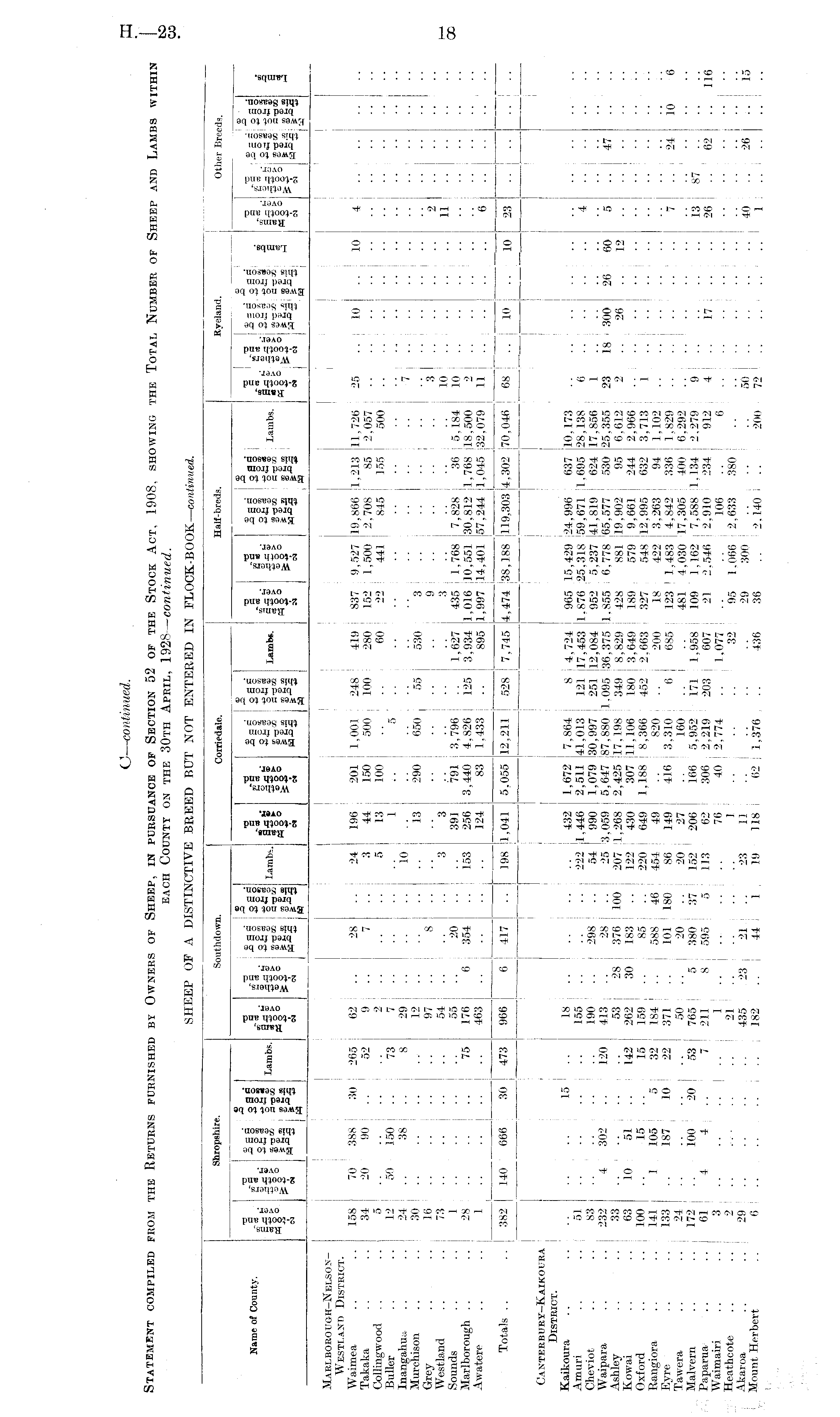 C—continued. Statement compiled from the Returns furnished by Owners of Sheep, in pursuance of Section 52 of the Stock Act, 1908, showing the Total Number of Sheep and Lambs within each County on the 30th April, 1928— continued. SHEEP OF A DISTINCTIVE BREED BUT NOT ENTERED IN FLOCK-BOOK— continued.