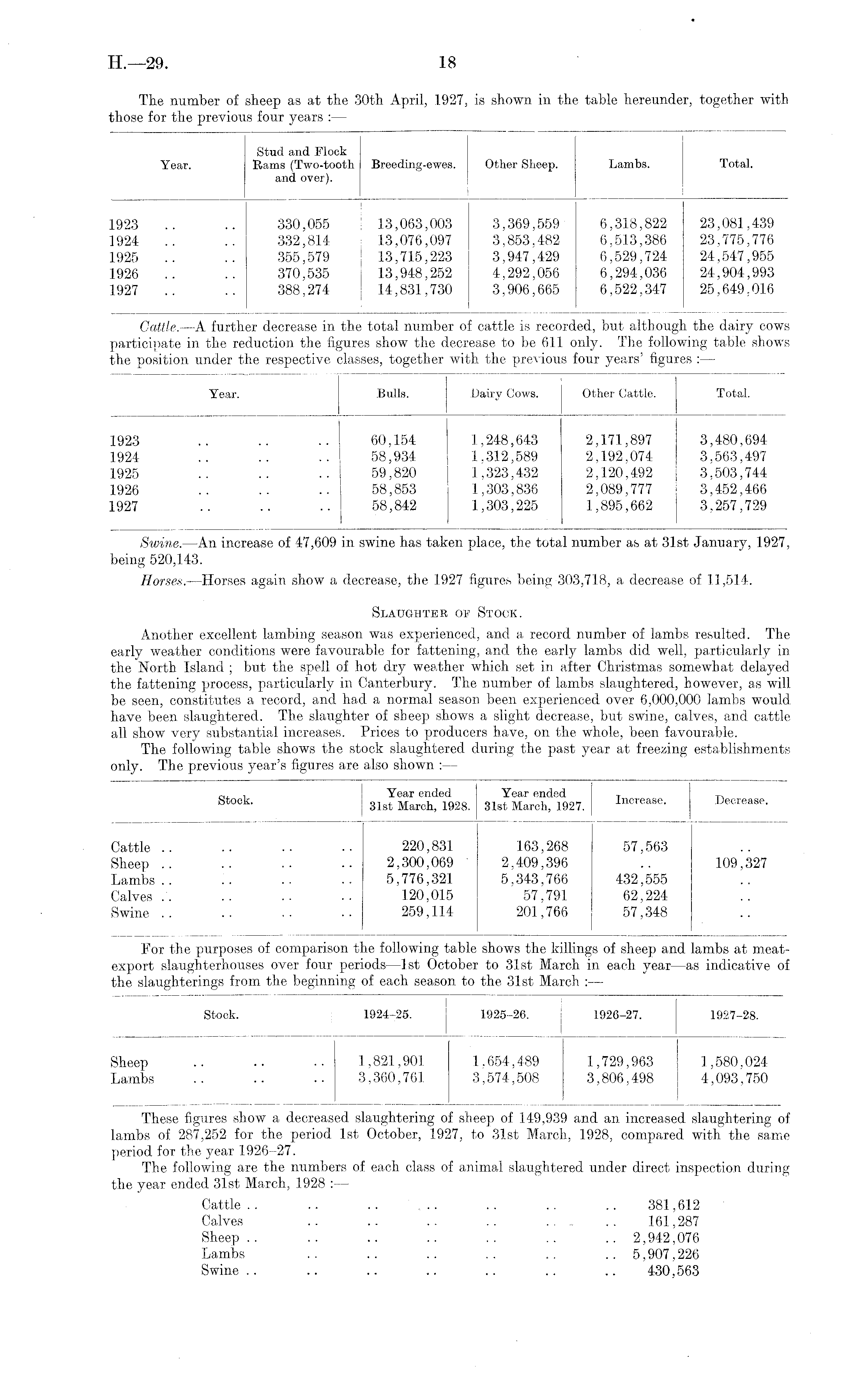 Stock. 1924-25. j 1925-26. • 1926-27. 1927-28. Sheep .. .. ... 1,821,901 1.654,489 1,729,963 1,580,024 Lambs .. .. .. 3,360,761 3,574,508 3,806,498 4,093,750