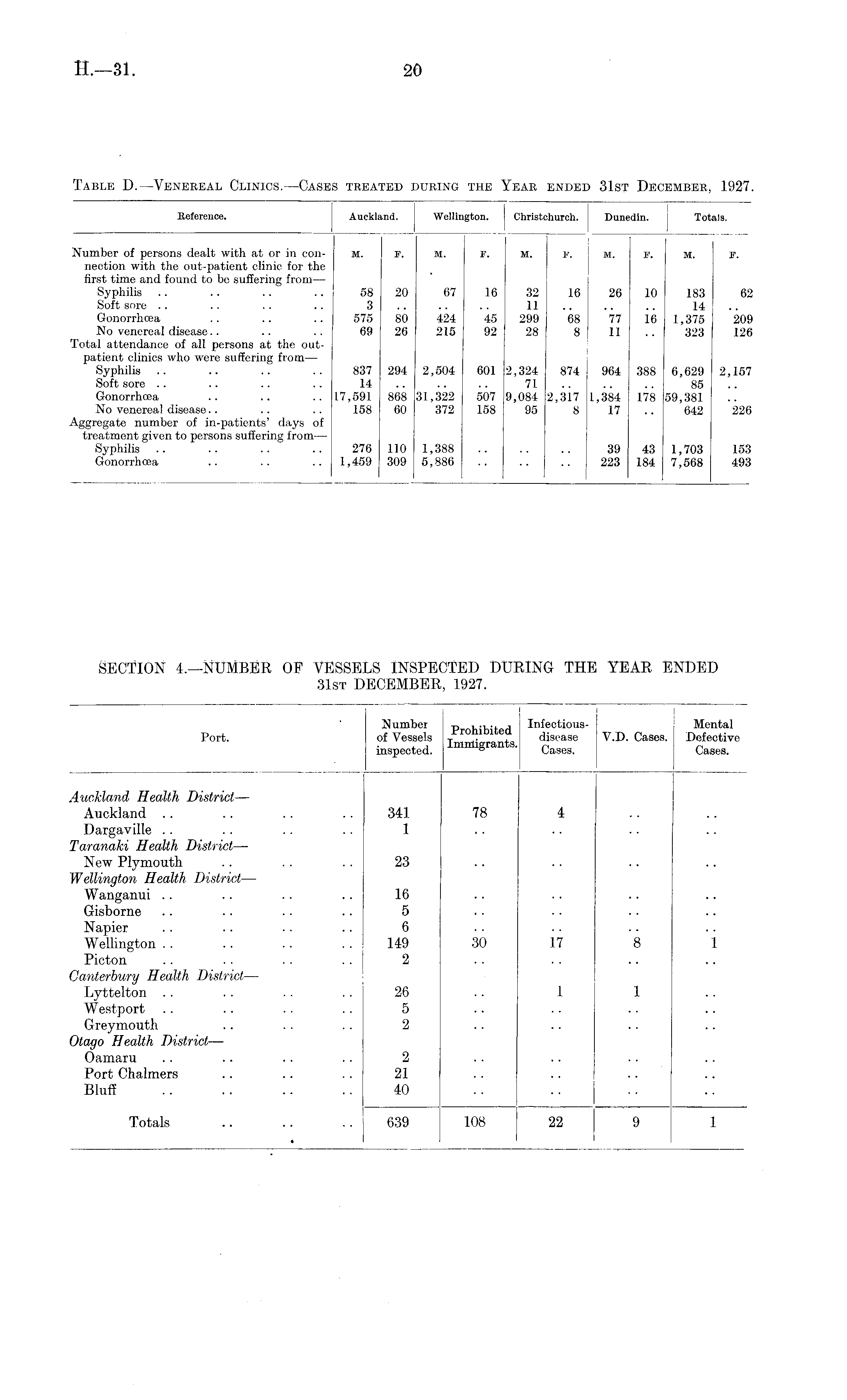 Table D.—Venereal Clinics.—Cases treated during the Year ended 31st December, 1927.