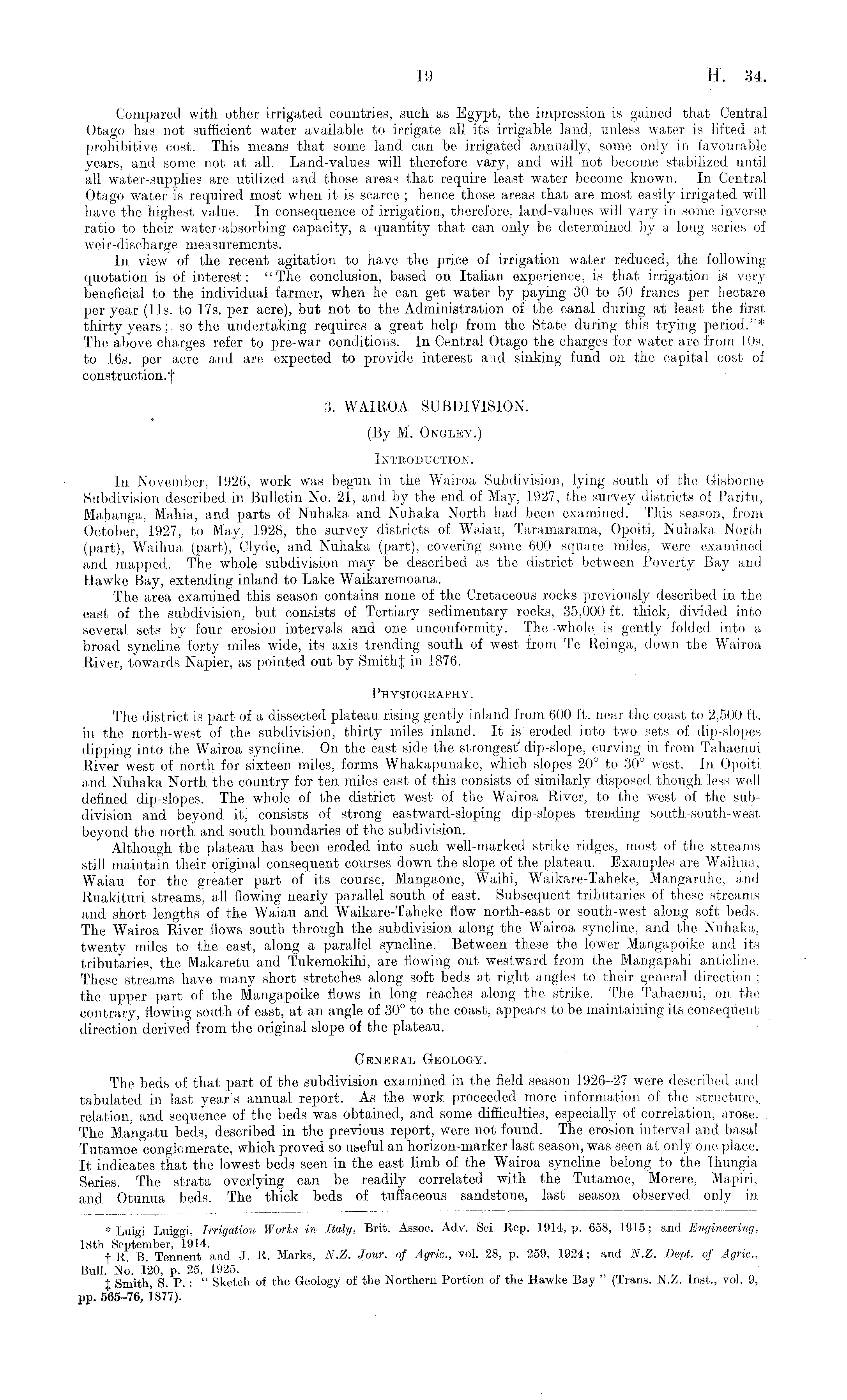 * Luigi Luiggi, Irrigation Works in Italy, Brit. Assoc. Adv. Sci. Rep. 1914, p. 658, 1915; and Engineering, 18th September, 1914. fR. B. Tennent and J. R. Marks, N.Z. Jour, of Agric., vol. 28, p. '259, 1924; and N.Z. Dept. of Agric., Bull. No. 120, p. 25, 1925. % Smith, S. P. : " Sketch of the Geology of the Northern Portion of the Hawke Bay " (Trans. N.Z. Inst., vol. 9, pp. 565-76, 1877).