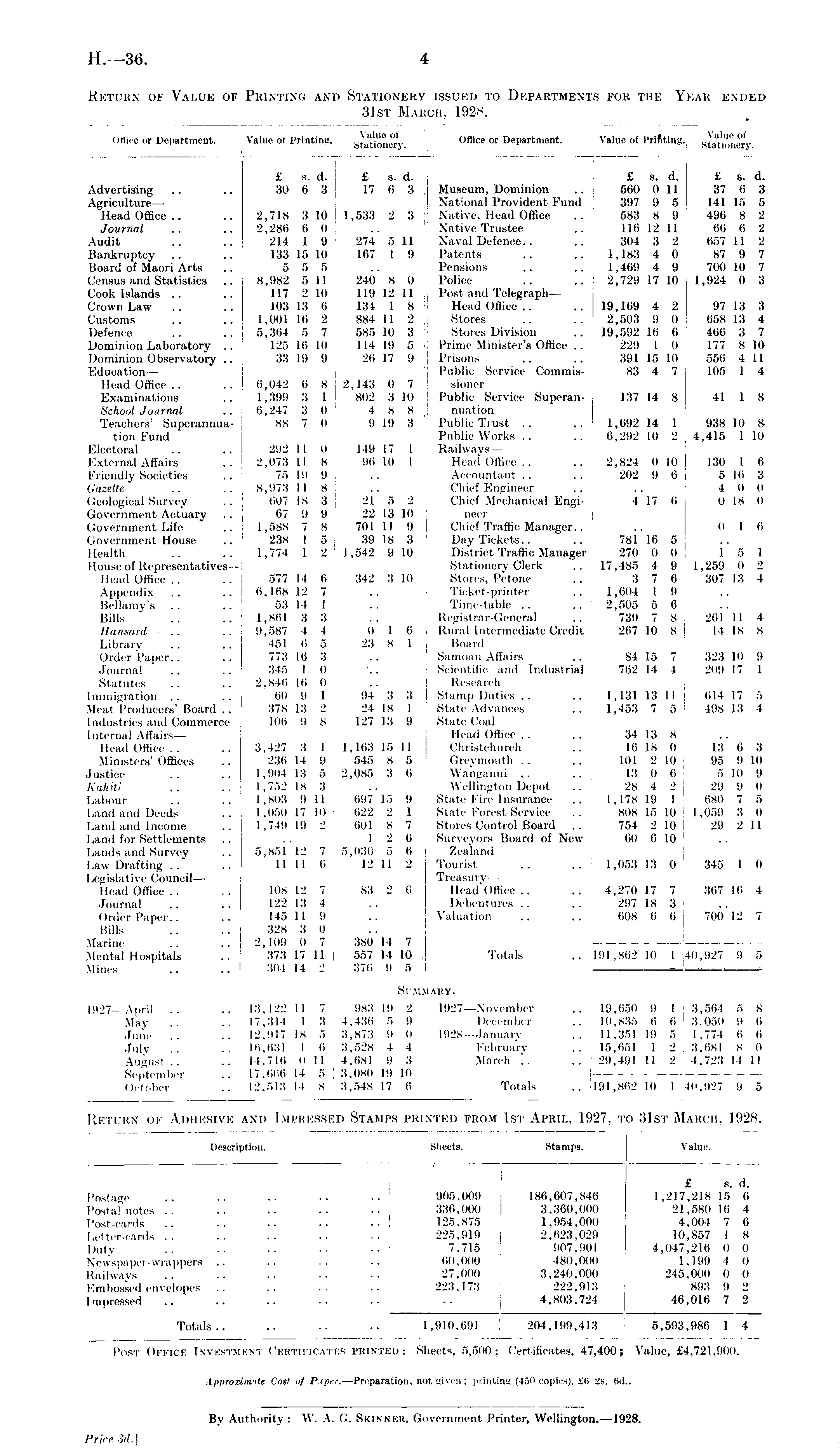Return of Adhesive and Impressed Stamps printed from 1st April, 1927, to 31st March, 1928.