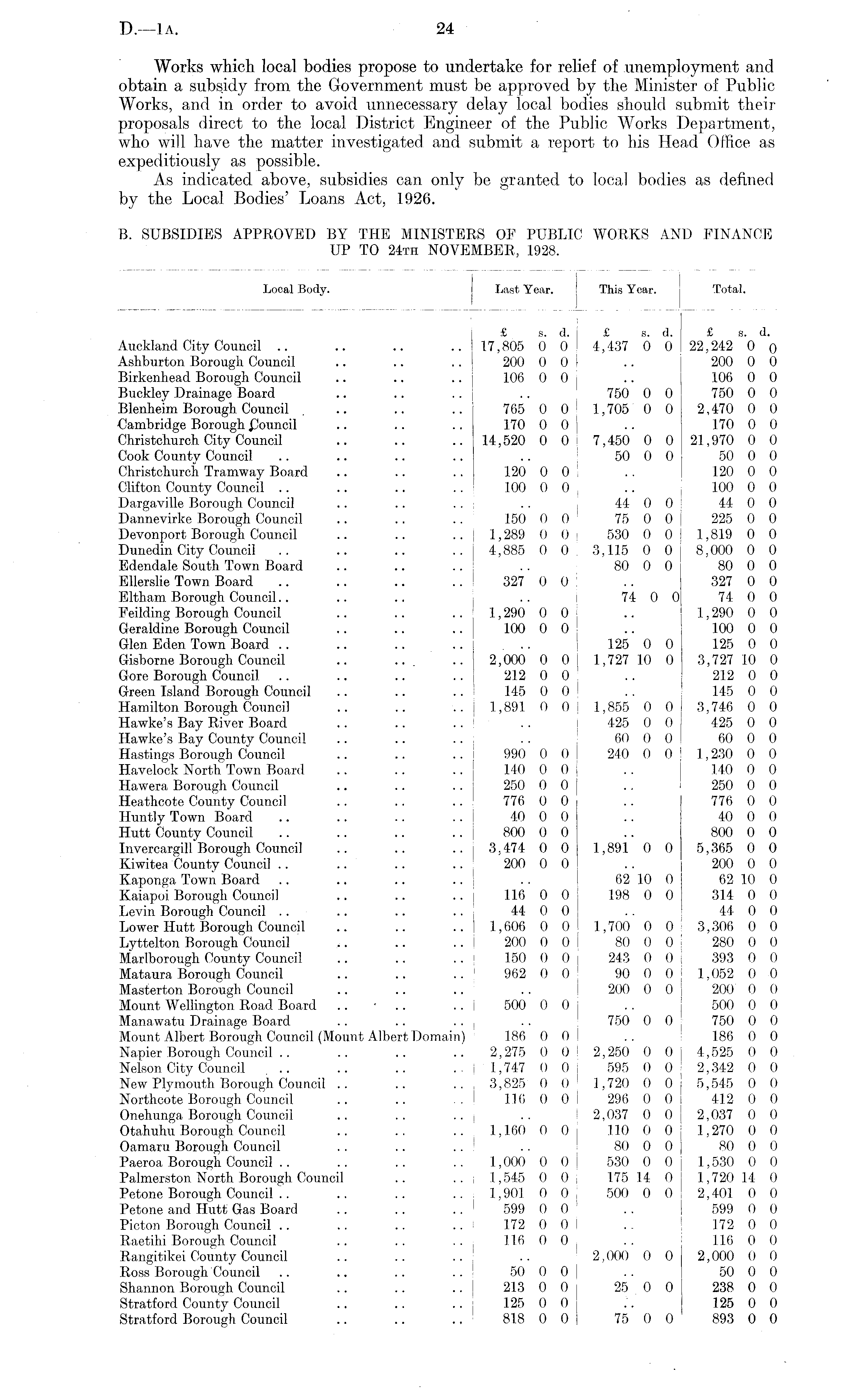 B. SUBSIDIES APPROVED BY THE MINISTERS OF PUBLIC WORKS AND FINANCE UP TO 24th NOVEMBER, 1928.