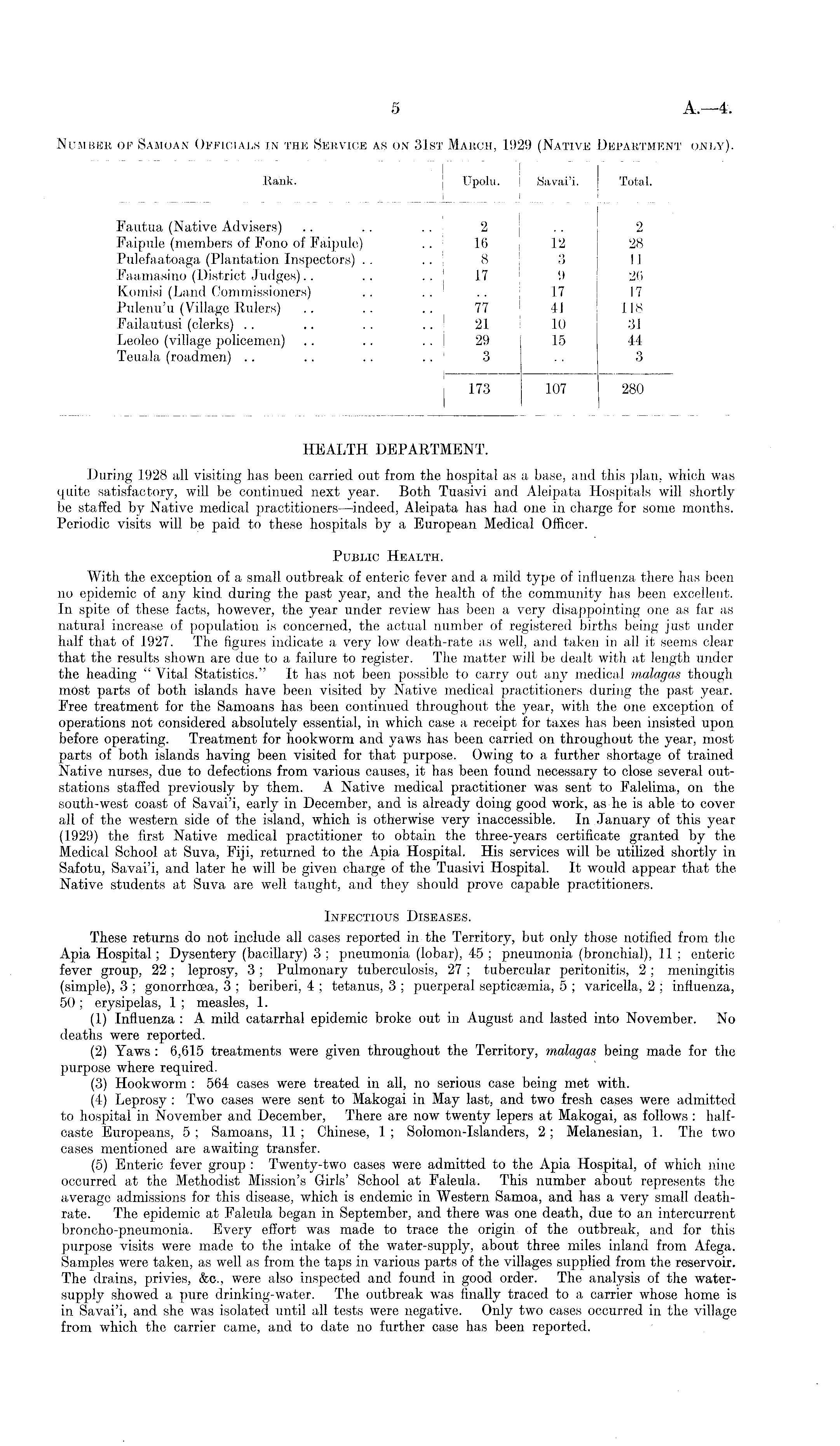Number of Samoan Officials in the Service as on 31st March, 1929 (Native Department only).