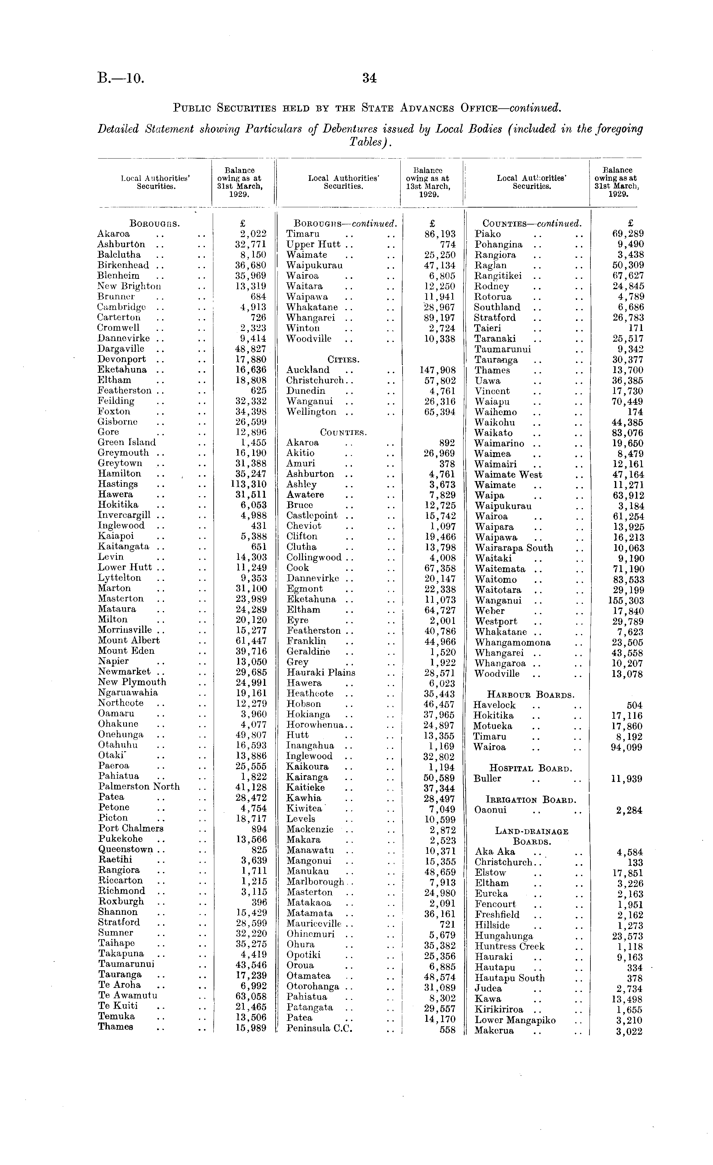 Public Securities held by the State Advances Office —continued. Detailed Statement showing Particulars of Debentures issued by Local Bodies (included in the foregoing Tables).