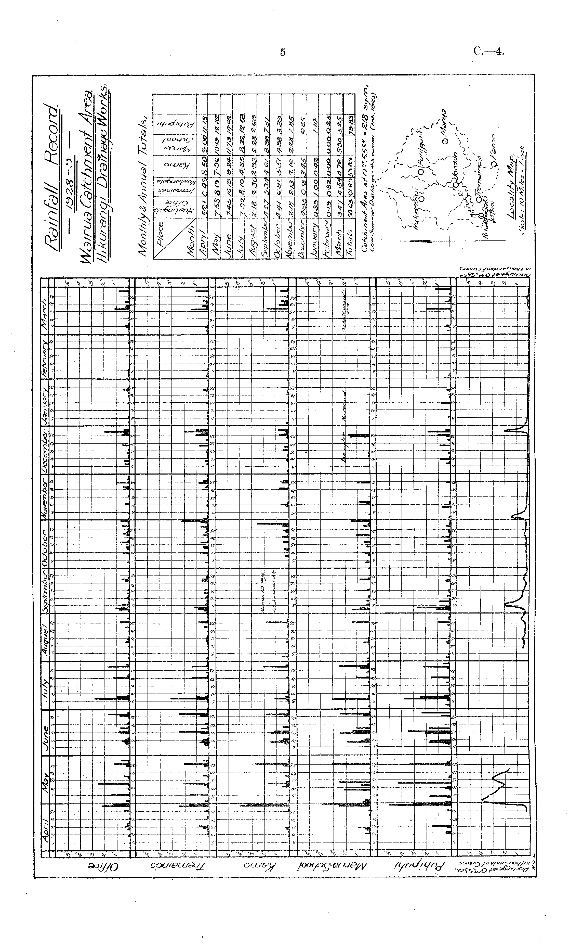 Rainfall Record. 1928-9 Wairua Catchment Area Hikurangi Drainage Works.