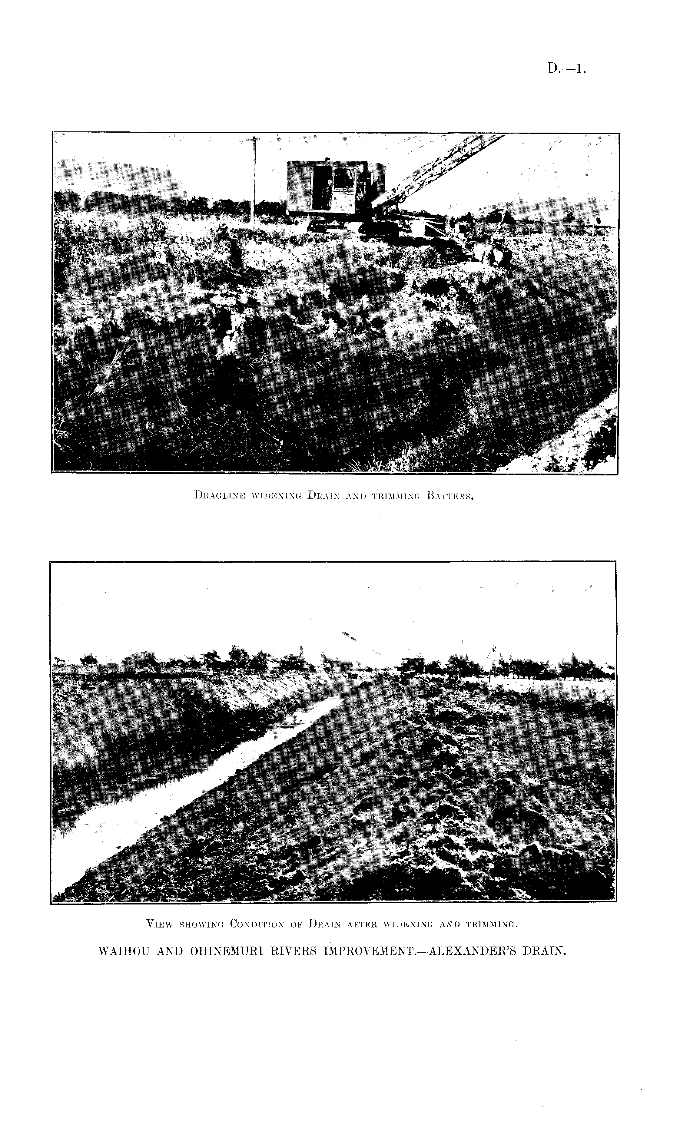 View showing Condition of Drain after widening and trimming. WAIHOU AND OHINEMURI RIVERS IMPROVEMENT.—ALEXANDER'S DRAIN.