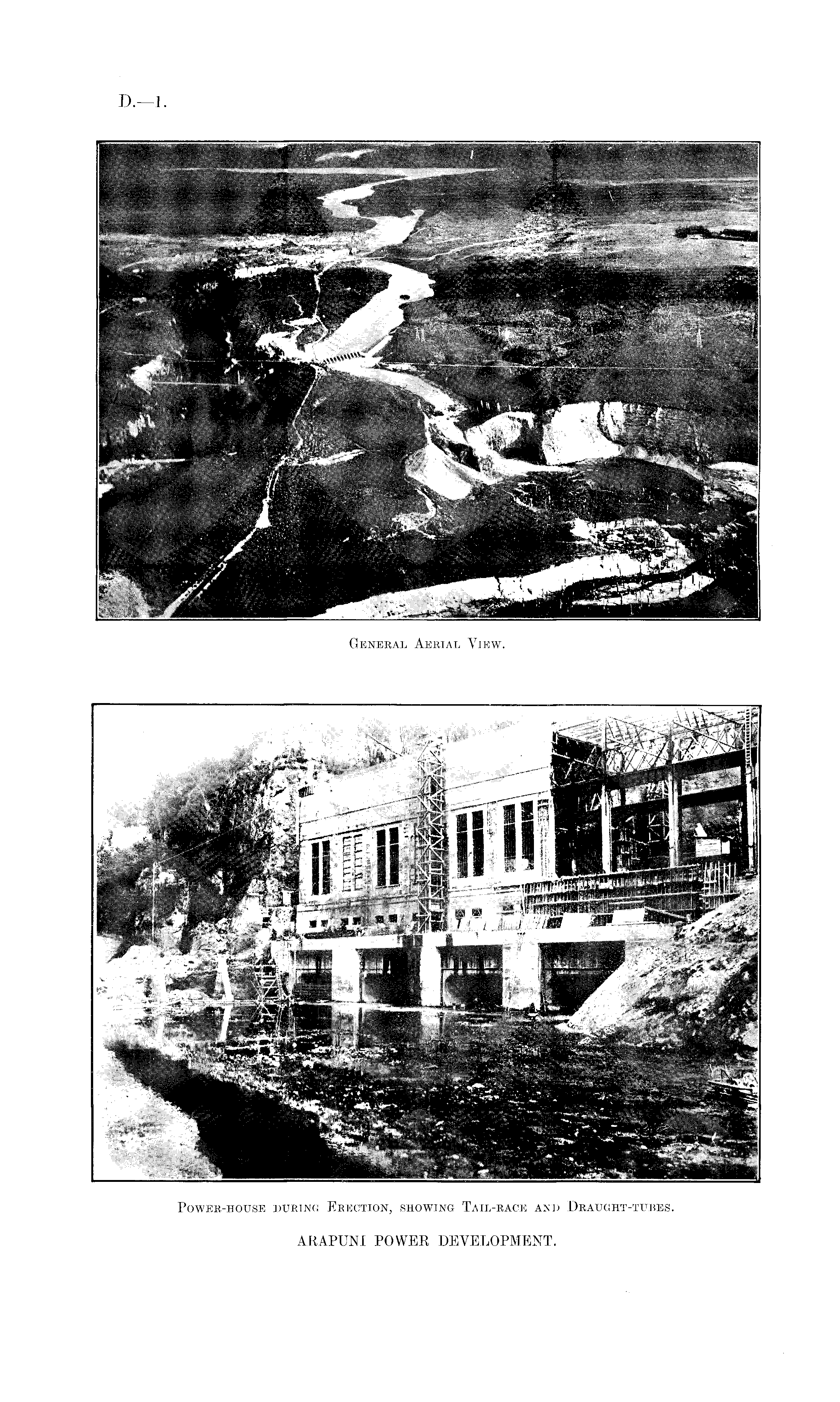 Power-house during Erection, showing Tail-race and Draught -tubes. ARAPUNI POWER DEVELOPMENT.