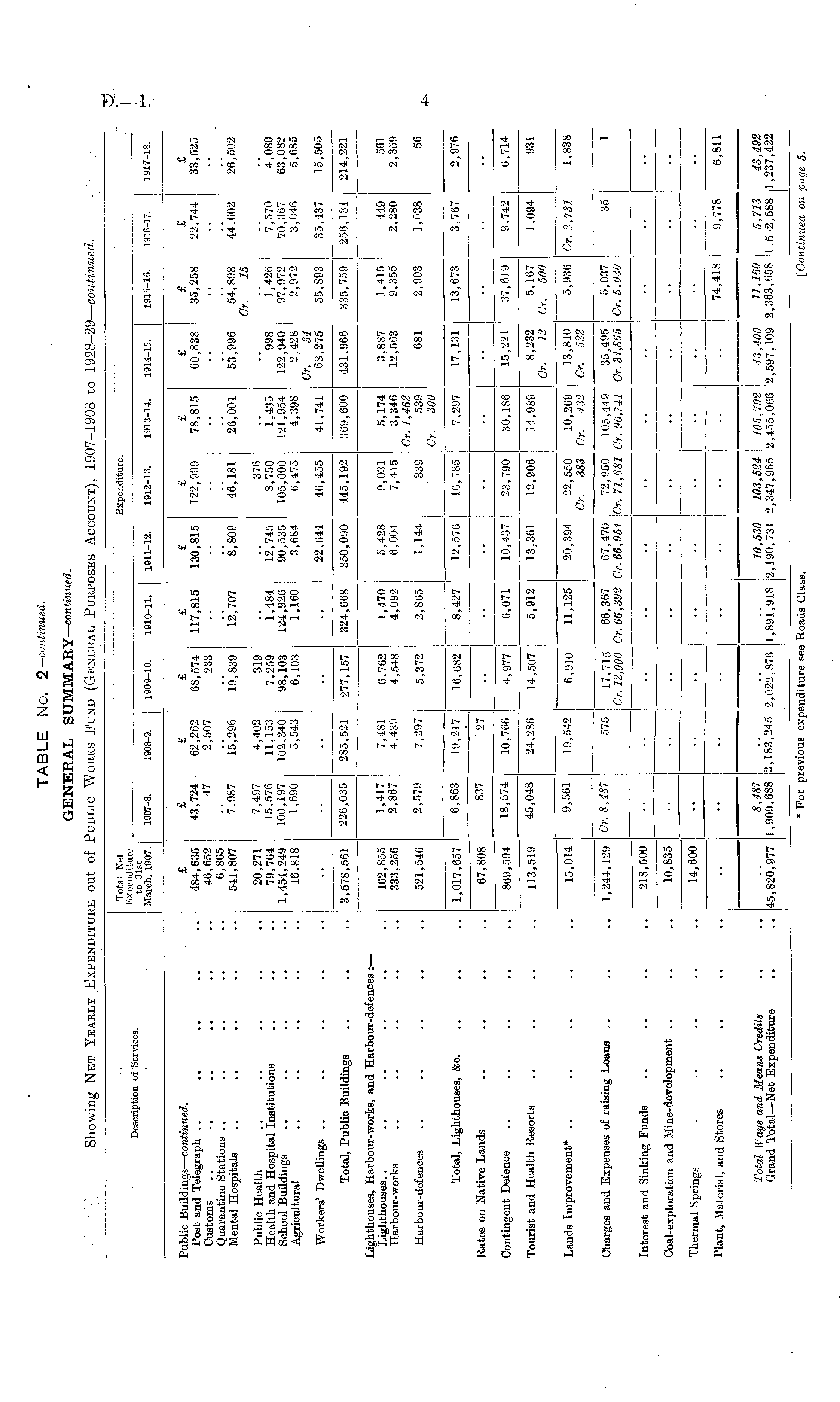 TABLE No. 2—continued. GENERAL SUMMARY—continued. Showing Net Yearly Expenditure out of Public Works Fund (General Purposes Account), 1907-1908 to 1928-29—continued.
