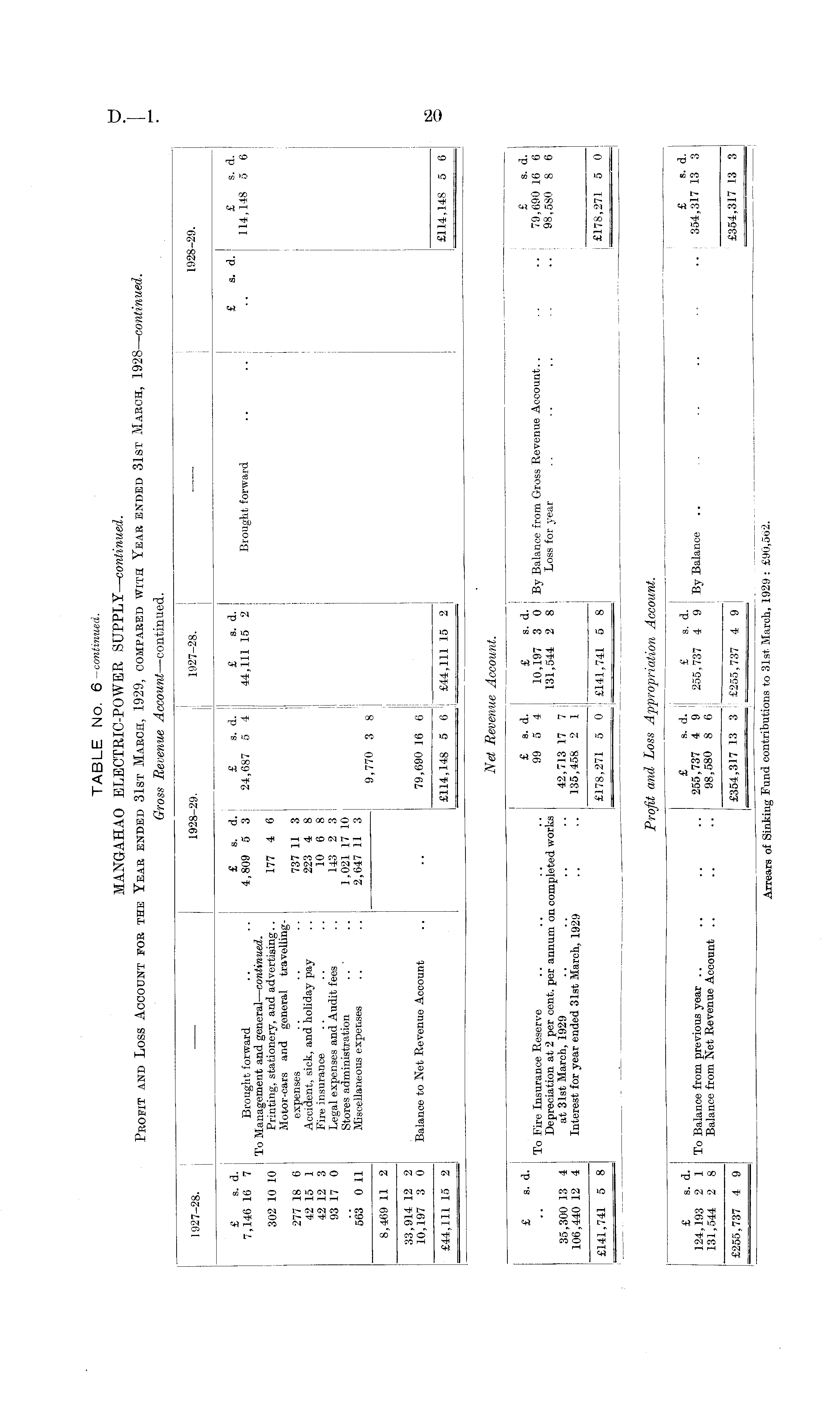 TABLE No. 6—continued. MANGAHAO ELECTRIC-POWER SUPPLY— continued. Profit and Loss Account for the Year ended 31st March, 1929, compared with Year ended 31st March, 1928—continued.