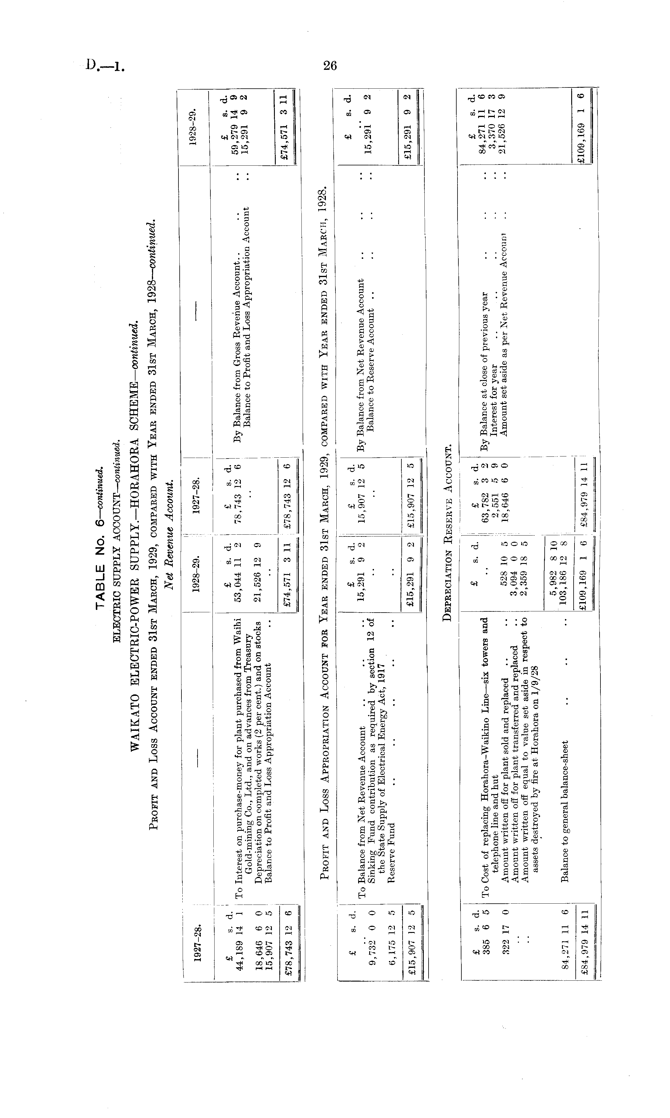 TABLE No. 6—continued. ELECTRIC SUPPLY ACCOUNT—continued. WAIKATO ELECTRIC-POWER SUPPLY.—HORAHORA SCHEME—continued. Profit and Loss Account ended 31st March, 1929, compared with Year ended 31st March, 1928—continued. Net Revenue Account.