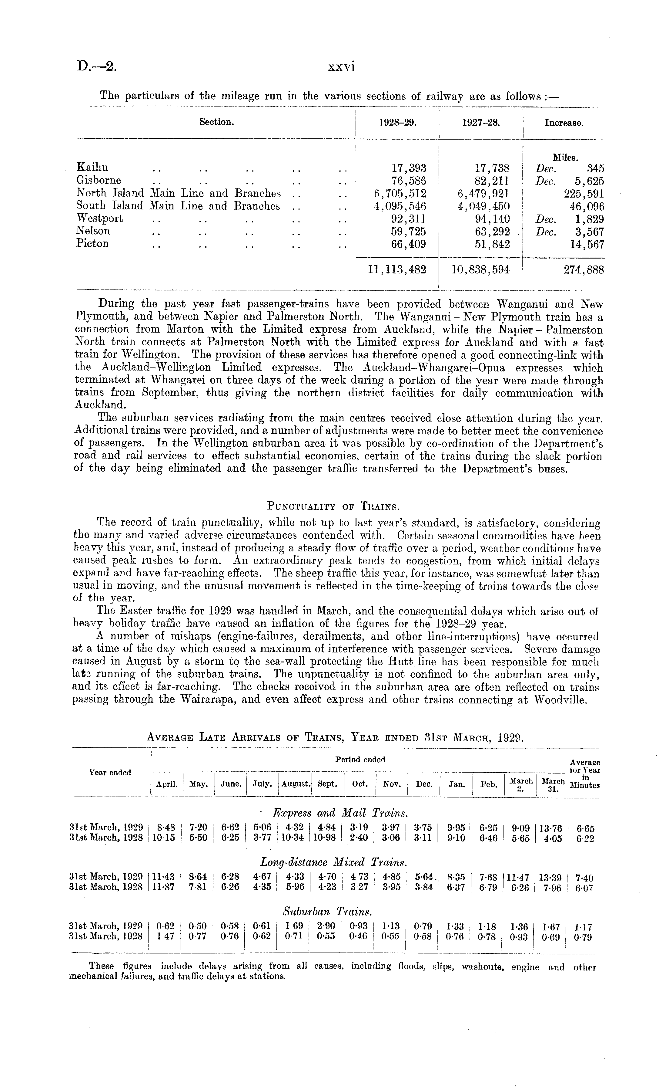 Period ended Averase Vear ended • tor Year April. May. June. July. August. Sept. Oct. Nov. Dec. Jan. Feb. M | r ch March Minutes ' Express and Mail Trains. 31st March, 1929 I 8-48 j 7-20 j 6-62 I 5-06 I 4 32 ) 4-84 I 3-19 ; 3-97 I 3-75 | 9-95 | 6-25 i 9-09 I 13-76 6 65 31st March, 1928 ! 10 15 ! 5-50 ! 0-25 I 3-77 [10-34 110-98 1 2-40 3-06 ! 3-11 ; 910 ! 6-46 1 5-65 | 4-05 ! 6 22 Long-distance Mixed Trains. 31st March, 1929 111-43 j 8-64 j 6-28 , 4-67 j 4-33 1 4-70 4 73 4-85 5-64- 8-35 I 7-68 111-47 13-39 i 7-40 31st March, 1928 [ 11-87 ! 7-81 ' 6 26 1 4-35 ! 5-96 ' 4-23 ! 3-27 3-95 3 84 6-37 I 6-79 | 6-26 | 7-96 6-07 Suburban Trains. 31st March, 1929 j 0-62 0 50 0-58 0-61 1 69 2-90 ! 0-93 j 1-13 0-79 1-33 1-18 1-36 1-67 1 17 31st March, 1928 J 1 47 0 77 0-76 0-62 0 71 0-55 ; 0-4.6 ! 0-55 0-58: 0-76 0-78 0-93 0-69 ; 0-79 I ! I I ! These figures include delays arising from ali causes, including floods, slips, washouts, engine and other mechanical failures, and traffic delays at stations.