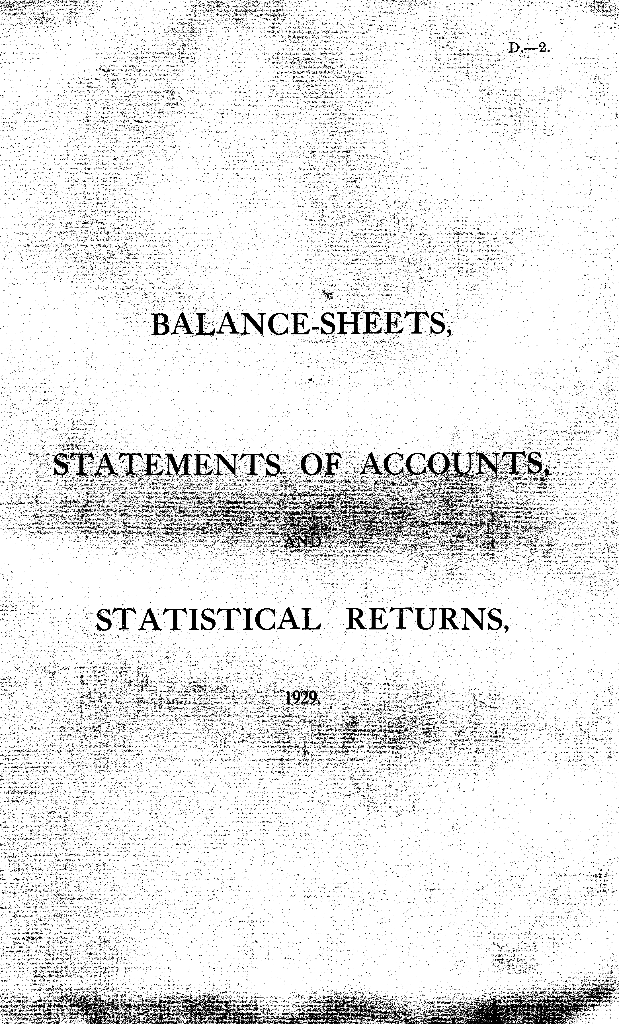 BALANCE-SHEETS, a STATEMENTS OF ACCOUNTS, AND STATISTICAL RETURNS, 1929.