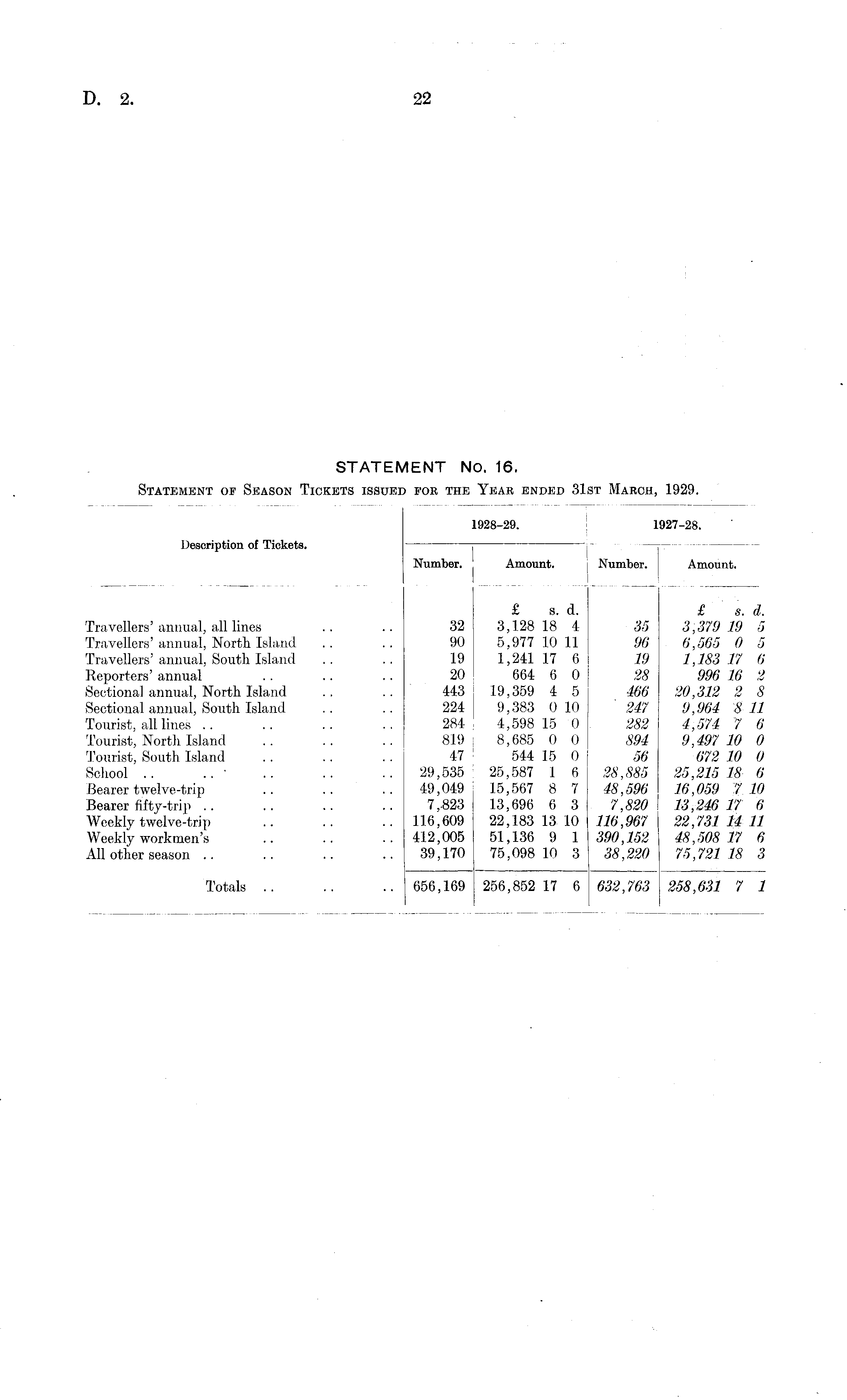 STATEMENT No. 16. Statement of Season Tickets issued for the Year ended 31st March, 1929.
