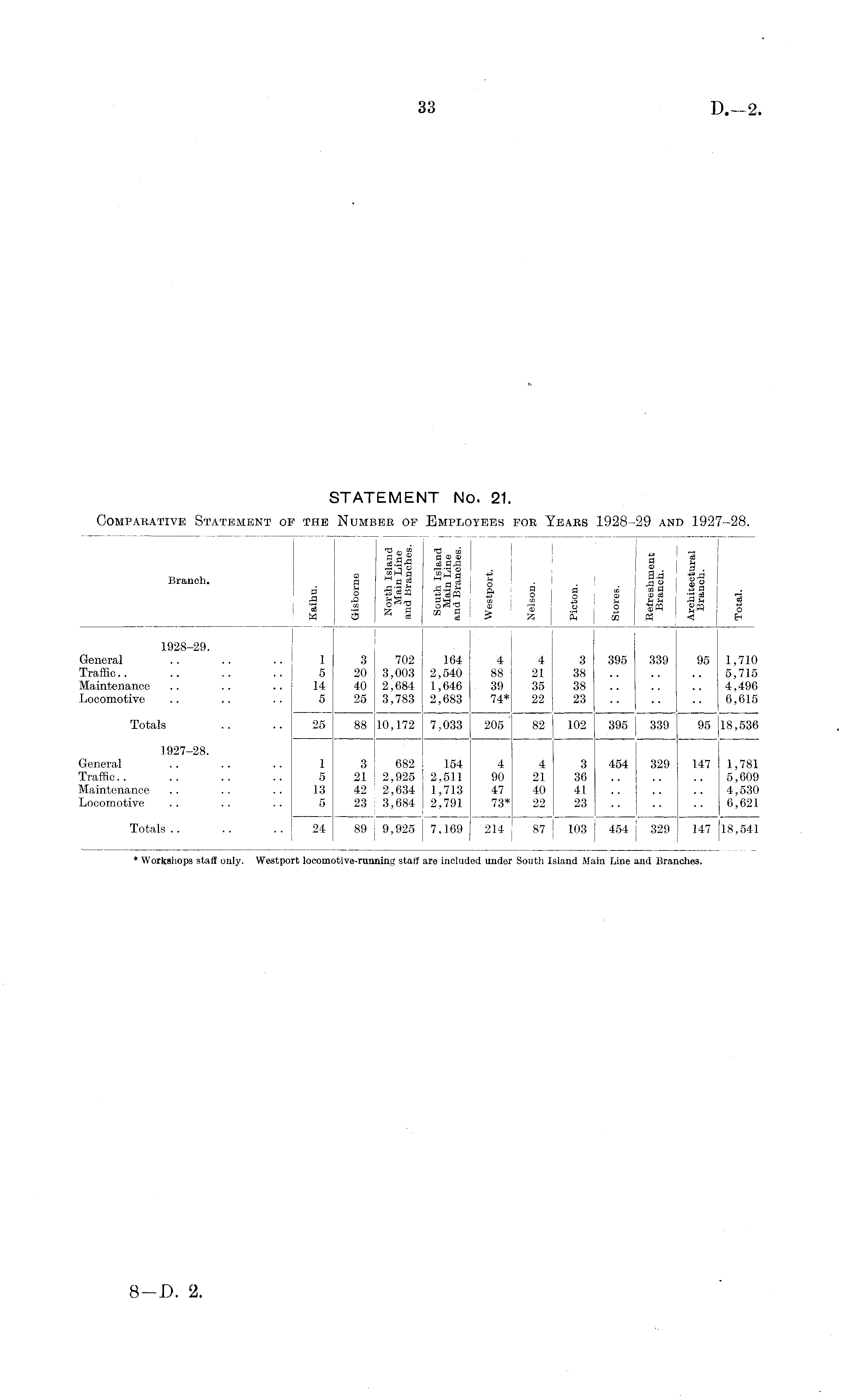 STATEMENT No. 21. Comparative Statement of the Number of Employees for Years 1928-29 and 1927-28.