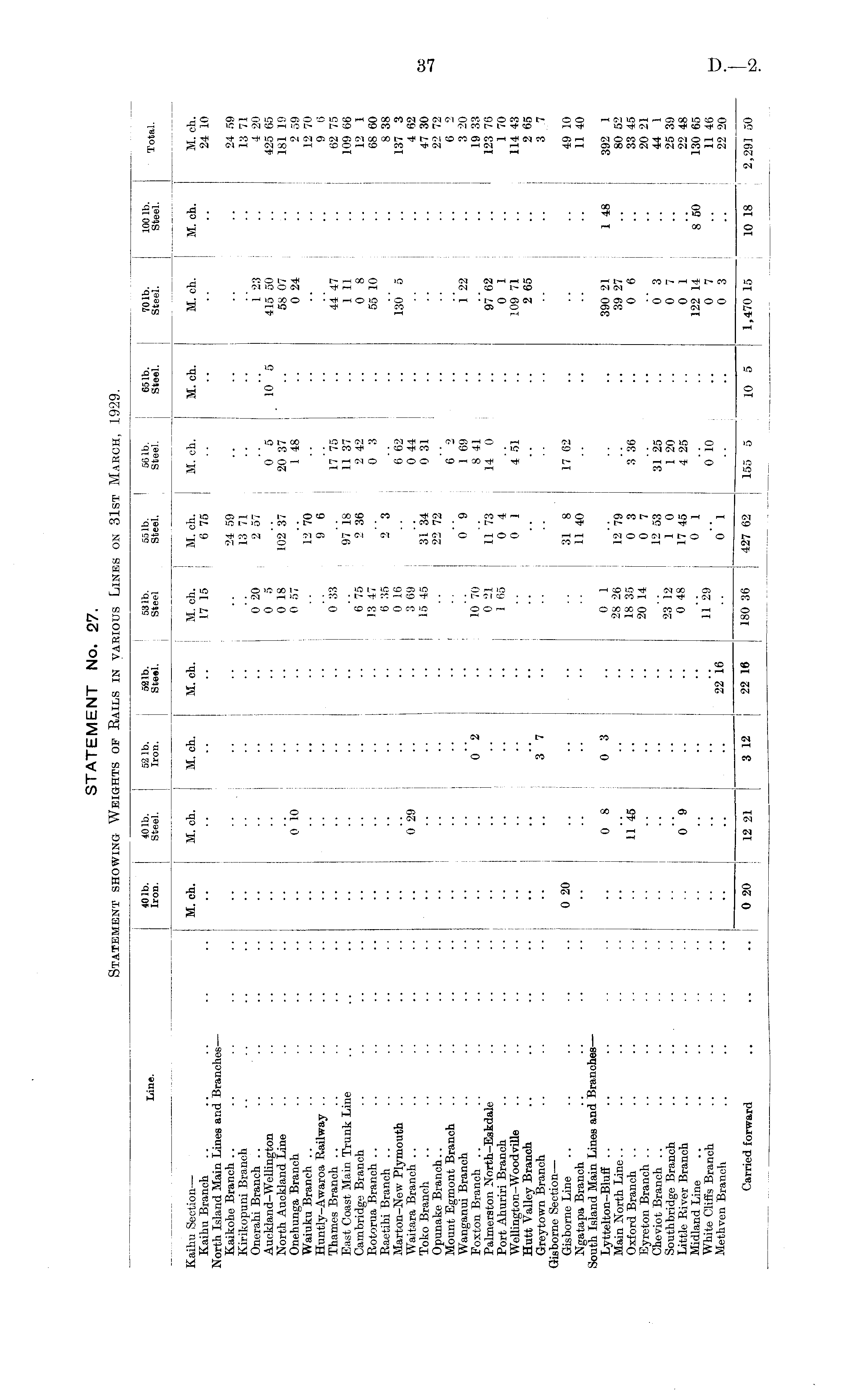 STATEMENT No. 27. Statement showing Weights of Rails in various Lines on 31st March, 1929.