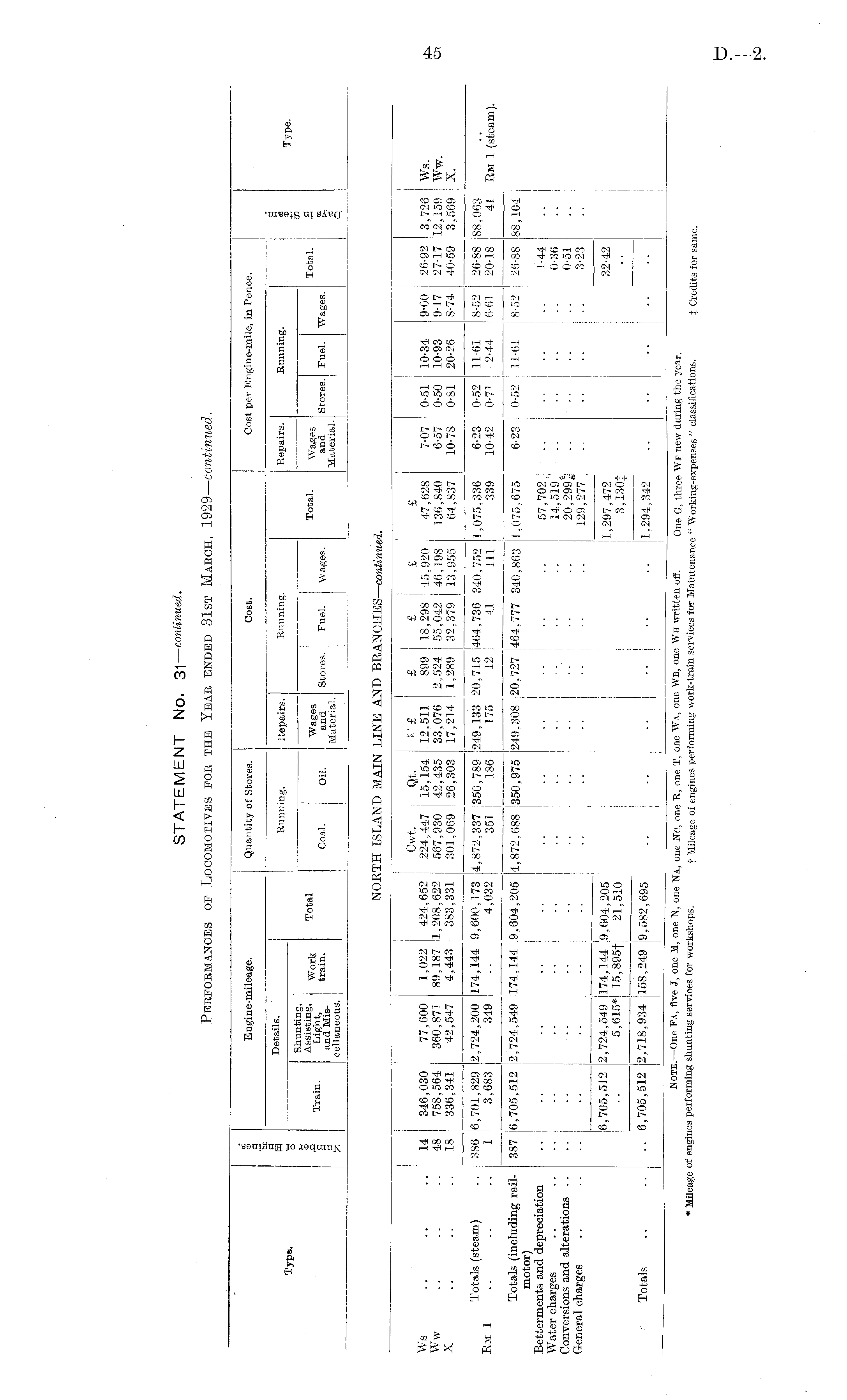 STATEMENT No. 31—continued. Performances of Locomotives for the Year ended 31st March, 1929—continued.