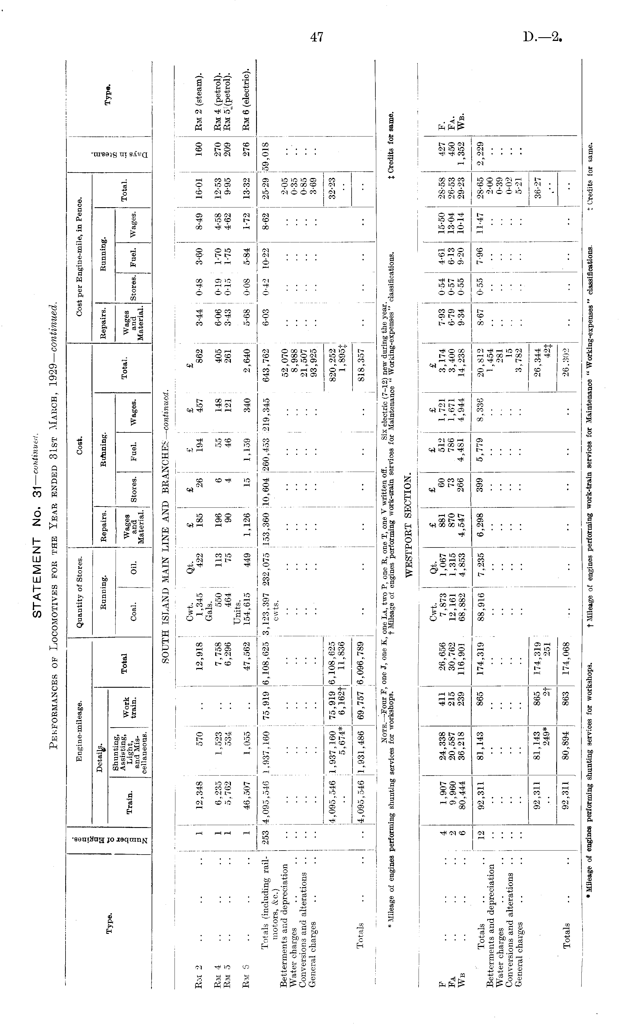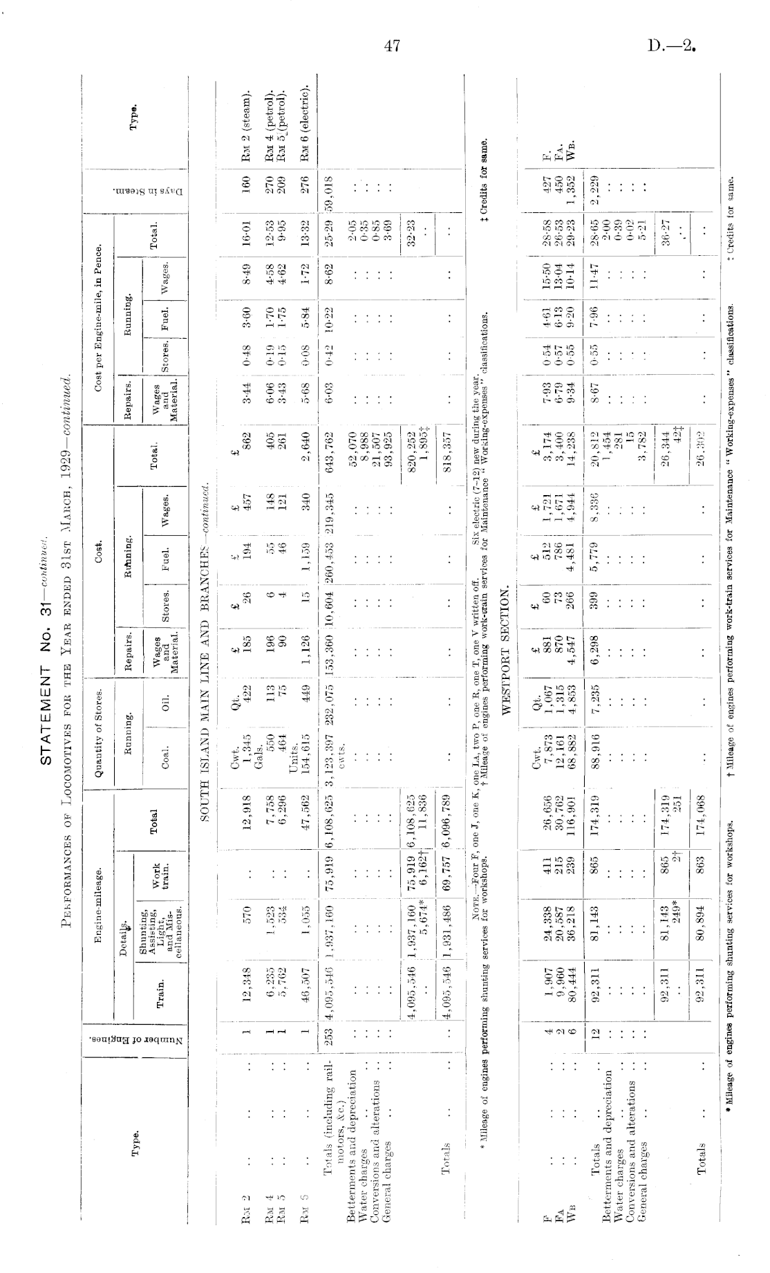STATEMENT No. 31—continued. Performances of Locomotives for the Year ended 31st March, 1929—continued.