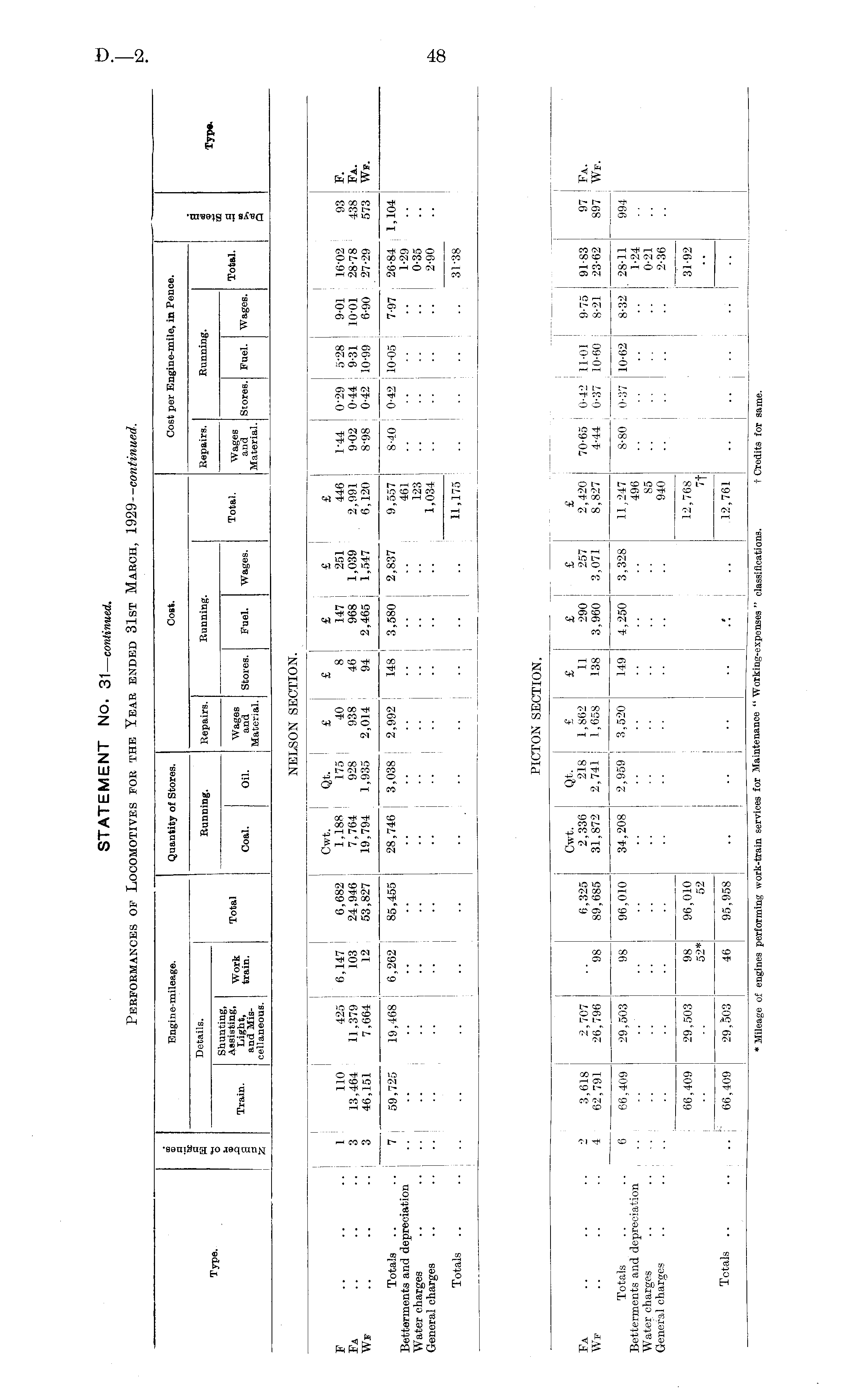 STATEMENT No. 31—continued. Performances of Locomotives for the Year ended 31st March, 1929—continued.