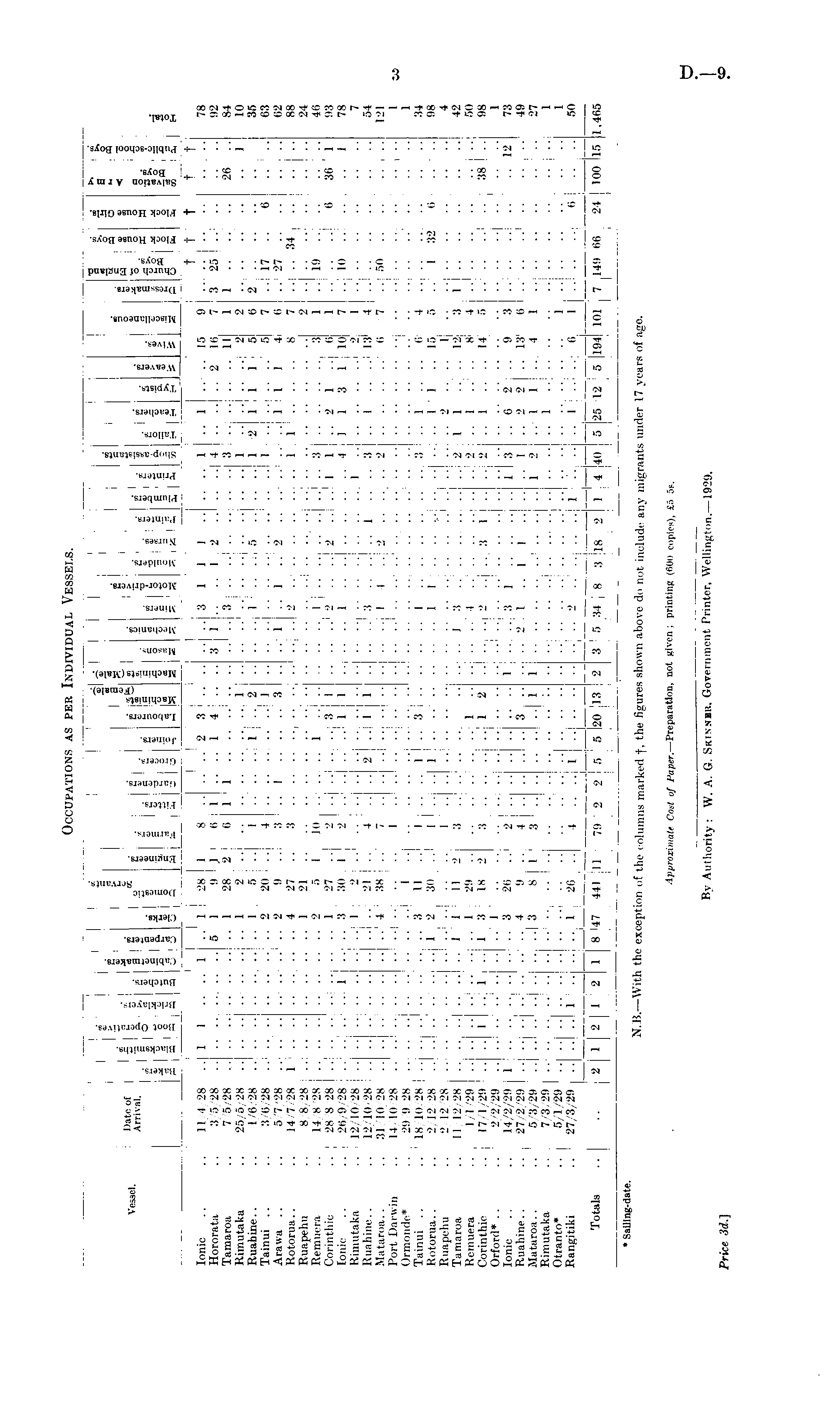 I w • '§ «5 aj >» £ 8 • "S -a 2" • >2 £ s i2 m "§ «; "SP PQ N W . S *"• § M § ® O 4) <J 'o v „ ge| Date of 5 | B •§ » £ „• «• a& a « ® « 8 J 2 § 3 S Arrival. I » >. 2 8 I S 8 . . S 1 ■ . S 32 »B„'« 8 • e q •§ o . o o g.o g,S c -g2gg„-g g 2 B§§8S-S.gc§«i.§$«S.2s=£Sfs;„;:| 1 € §■ 2 2 a 6 - ■a§| I g8SB|-Sl»g-§s£.ssl§'Sg-aggg i s« ! | s 3 ci-5 t,:3(3 <3'2 2 flea Jr ,2 ,2 e« sj o warasmooofi H H_JS_ S S n O & PH 5 ISH _ t t t t t Ionic .. .. 11/4/28 ..1 1 .. ..1 ..1 28 1 8 2 3 3 1 1 1 1 ..1 .... 15 9 78 Hororata .. 3/5/28 5 1 9 .1 6 1 .... 1 4 .... 3 1 .. ..1 2 4 2 16 7 3 25 92 Tamaroa .. 7/5/28 1 28 2 6 1 1 3 3 11 1 1 26 .. 84 Rimutaka .. 25/5/28 1 2 1 1 2 2 1 10 Ruahine.. .. 1/6/28 1 5 .. 1 1 .. 2 .. .... 1 .... 5 1 2 1 1 1 5 6 2 35 Tainui .. .. 3/6/28 2 20 .. 4 1 1 5 7 ..17 .. 6 .. .. 63 Arawa .. .. 5/7/28 2 9 .. 3 .. 1 3 .... 1 .. 1 .. 2 1 1 1 4 6 .. 27 62 Rotorua.. .. i 14/7/28 1 4 27 .. 3 2 1 1 8 7 .... 34 88 Ruapehu .. ; 8/8/28 1 21 2 .. .. 24 Remuera .. 14/8/28 2 5 1 10 I 1 3 3 1 ..19 46 Corinthic .. 28/8/28 1 27 .. 2 3 1 2 .... 2 .... 1 1 ..2 1 .. 6 1 6 36 1 93 Ionic .. .. 26/9/28 1 .... 3 30 1 2 1 1 1 4 1 1 3 1 10 7 ..10 1 78 Rimutaka .. 12/10/28 1 2 1 2 1 7 Ruahine.. .. 12/10/28 21 .. 4 .... 2 ..I 1 3 ] .... 3 ..1 .... 13 4 54 Mataroa.. .. | 31/10/28 4 38 .. 7 1 4 ..2 2 6 7 ..50 121 Port Darwin .. j 14/10/28 1 .. .. 1 Ormonde* .. j 29/9/28 1 .. .. 1 Tainui .. .. 18/10/28 3 11 .. I .... 1 ..3 1 3 ..1 .... 6 4 34 Rotorua.. .. 2/12/28 1 2 30 .. I .... 1 1 1 1 1 ..15 5 .. I 32 6 .. .. 98 Ruapehu .. 2/12/28 1 2 .. .. 1 4 Tamaroa .. 1 11/12/28 1 1 11 2 3 1 3 2 1 1 .... 12 3 1 42 Remuera .. 1/1/29 1 29 1 4 2 ..1 .... 8 4 .. .. 50 Corinthic .. 17/1/29 .... 1 . . 1 .. 1 3 18 2 3 1 2 2 .... 3 1 .... 2 .. 1 .... 14 5 38 .. 98 Orford* .. .. 2/2/29 1 1 Ionic .. .. 14/2/29 1 3 26 .. 2 1 .... 3 1 1 3 ..6 2 . . 9 3 12 73 Ruahine.. .. 27/2/29 4 9 .. 4 3 2 1 ..1 1 1 ..2 2 ..13 6 49 Mataroa.. .. 5/3/29 3 8 1 3 1 1 i 2 ..1 1 .. 4 1 27 Rimutaka .. 7/3/29 : 1 .. .. 1 Otranto* .. 5/1 /29 1 . . .. 1 Rangitiki .. 27/3/29 1 1 26 .. 4 .... 1 .. 2 1 .' 1 .... 6 1 6 .. .. 50 Totals .. .. 2 1 2 1 j 2 1 8 47 441 111 79 2 2 5 5 20 13 2 3 5 34 8 3 18 2 1 4 40 5 25 12 5 194 101 7 149 66 24 100 15 1,465 III I * Sailing-date. N.B. —With the exception of the columns marked f, the figures shown above do not include any migrants under 17 years of age.