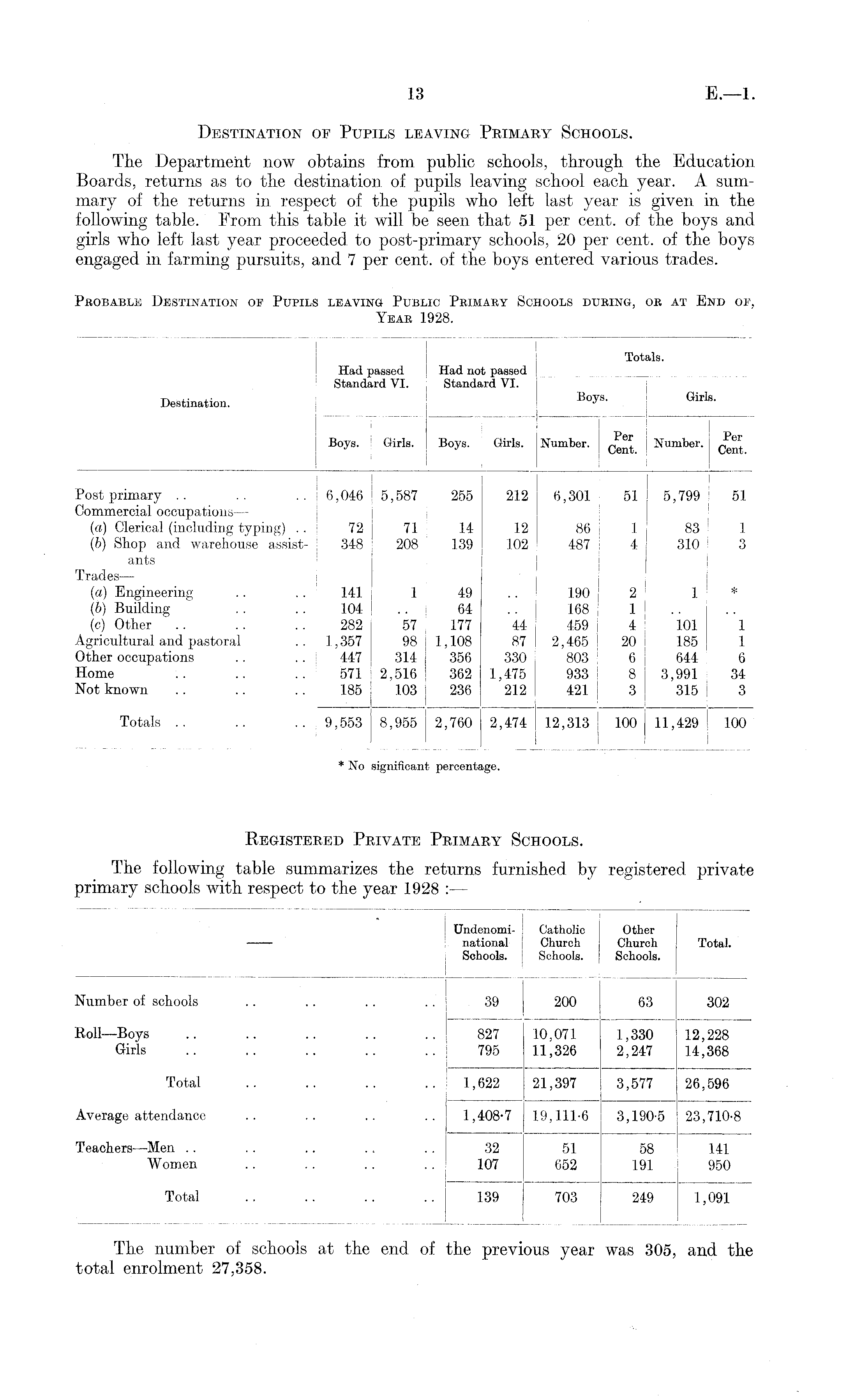 Probable Destination of Pupils leaving Public Primary Schools during, or at End of, Year 1928.