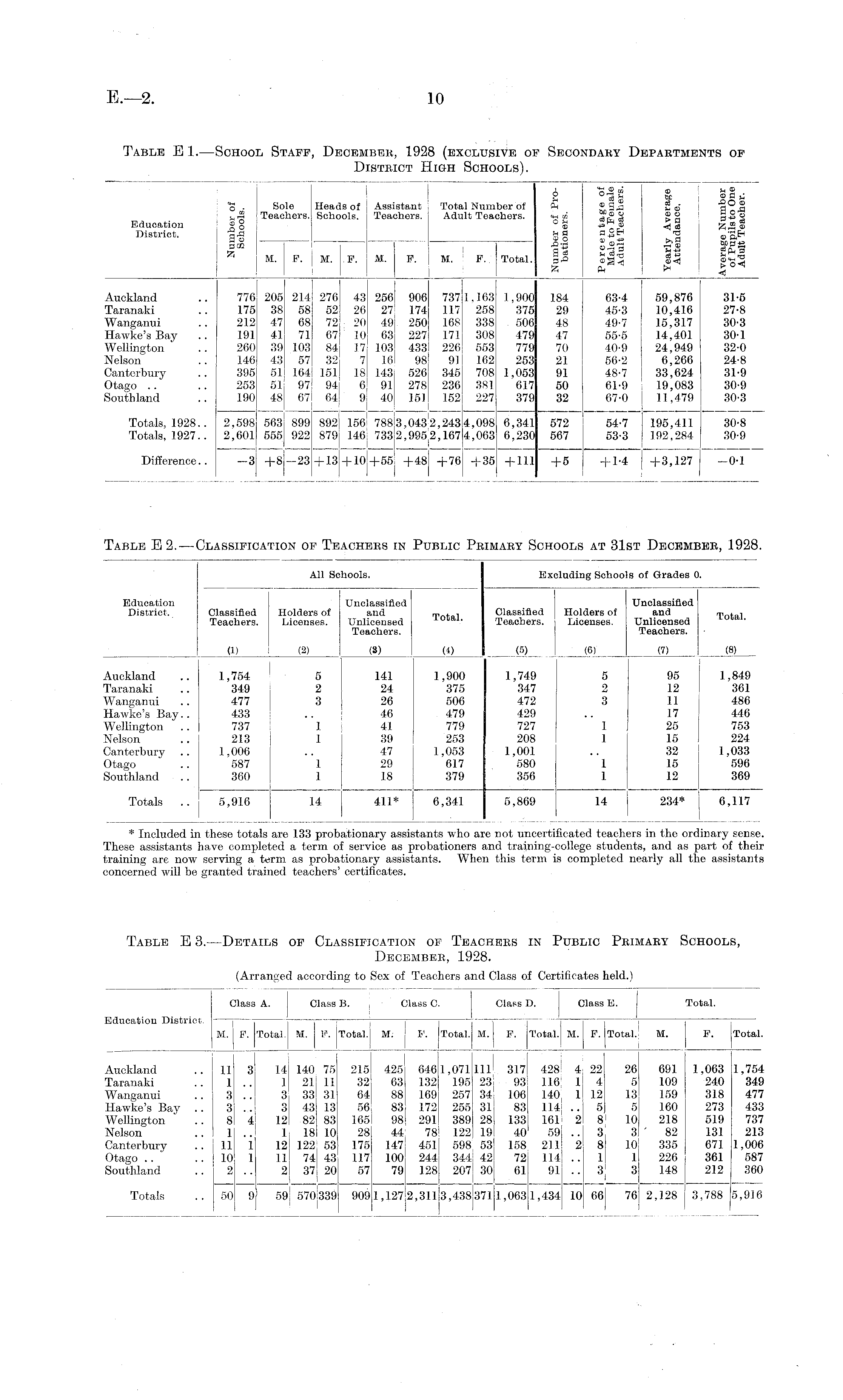 Table E1. —School Staff, December, 1928 (exclusive of Secondary Departments of District High Schools).