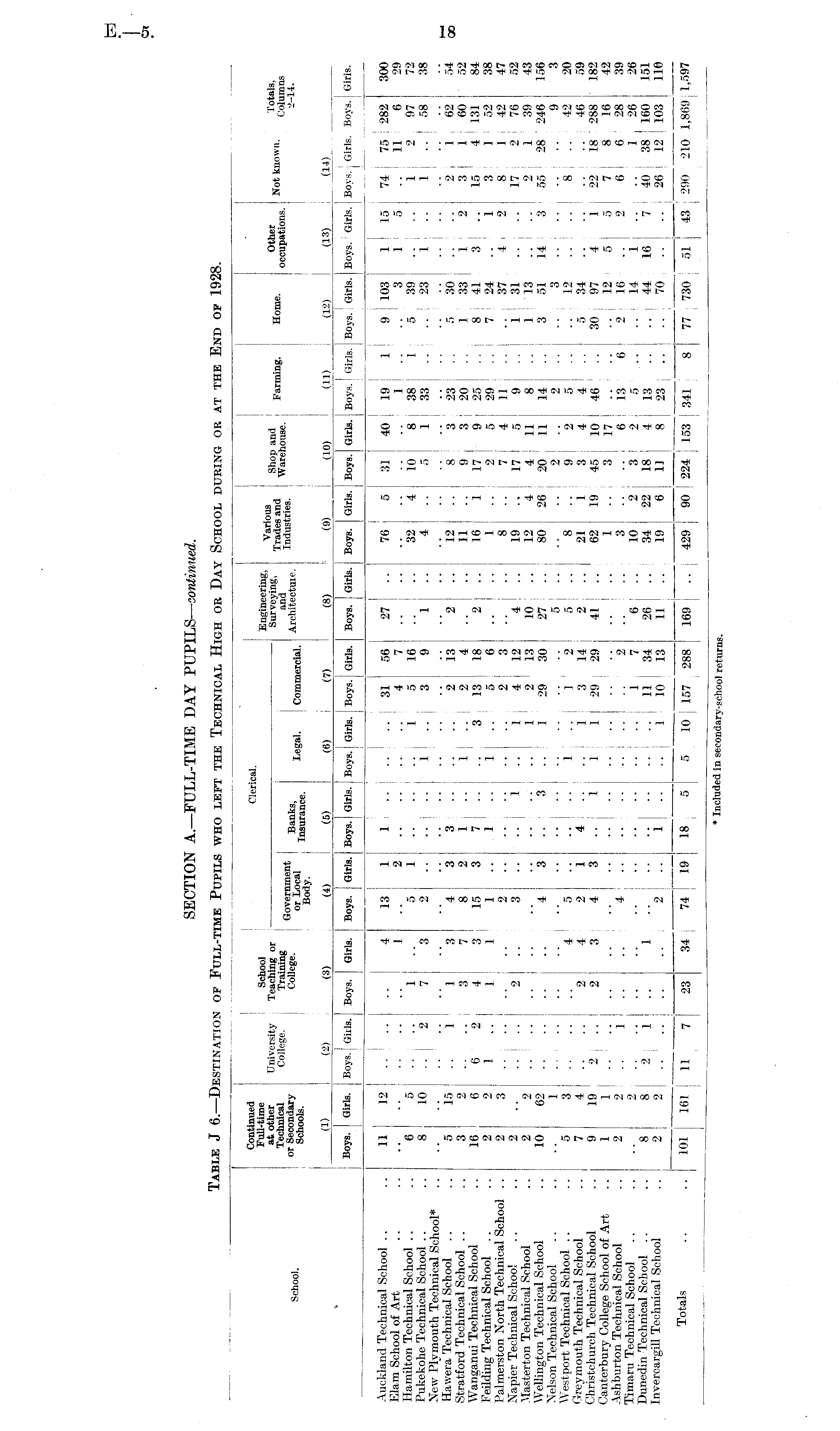SECTION A.—FULL-TIME DAY PUPILS—continued. Table J6.—Destination of Full-time Pupils who left the Technical High or Day School during or at the End of 1928.