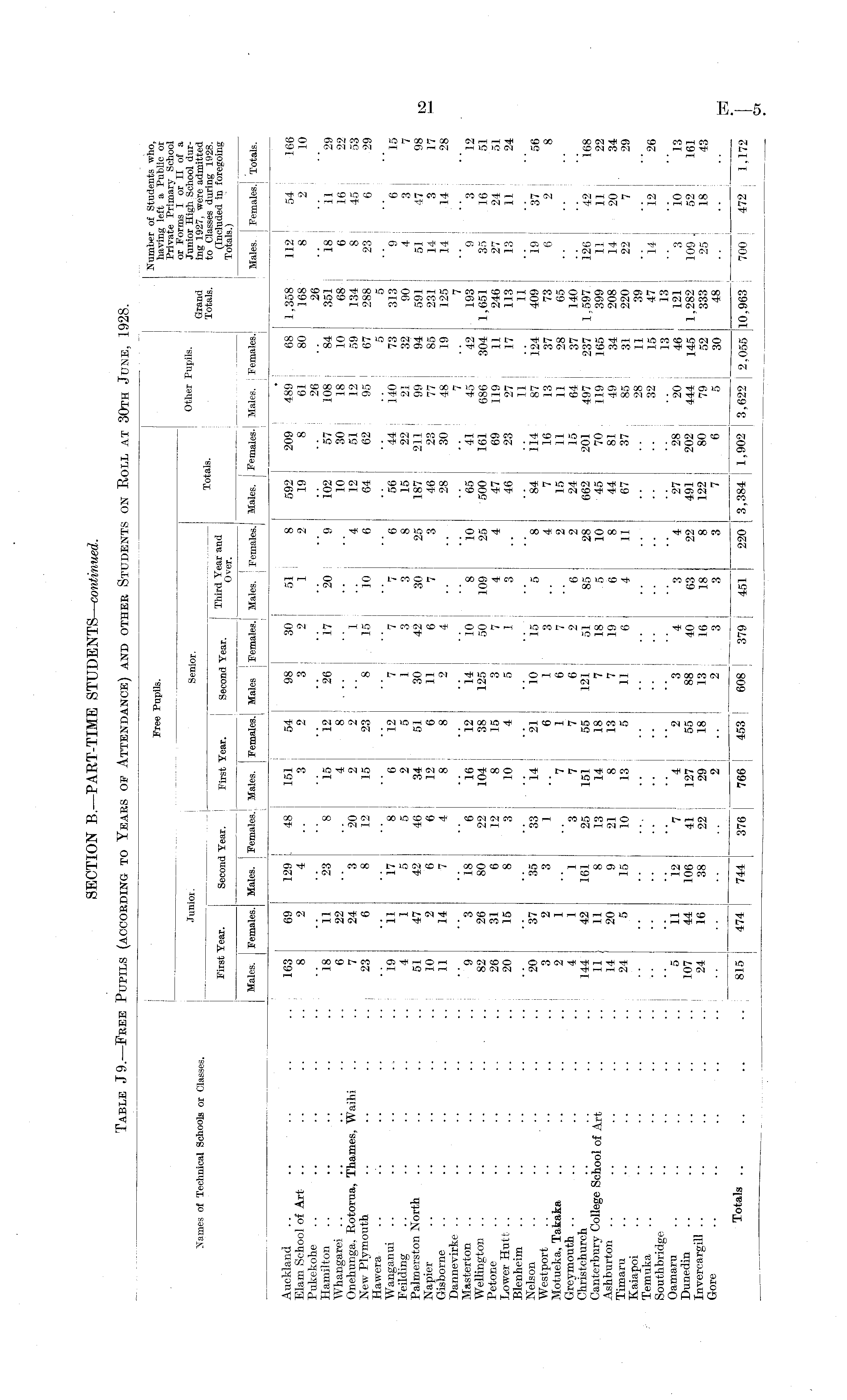 SECTION B.—PART-TIME STUDENTS—continued. Table J9.—Free Pupils (according to Years of Attendance) and other Students on Roll at 30th June, 1928.