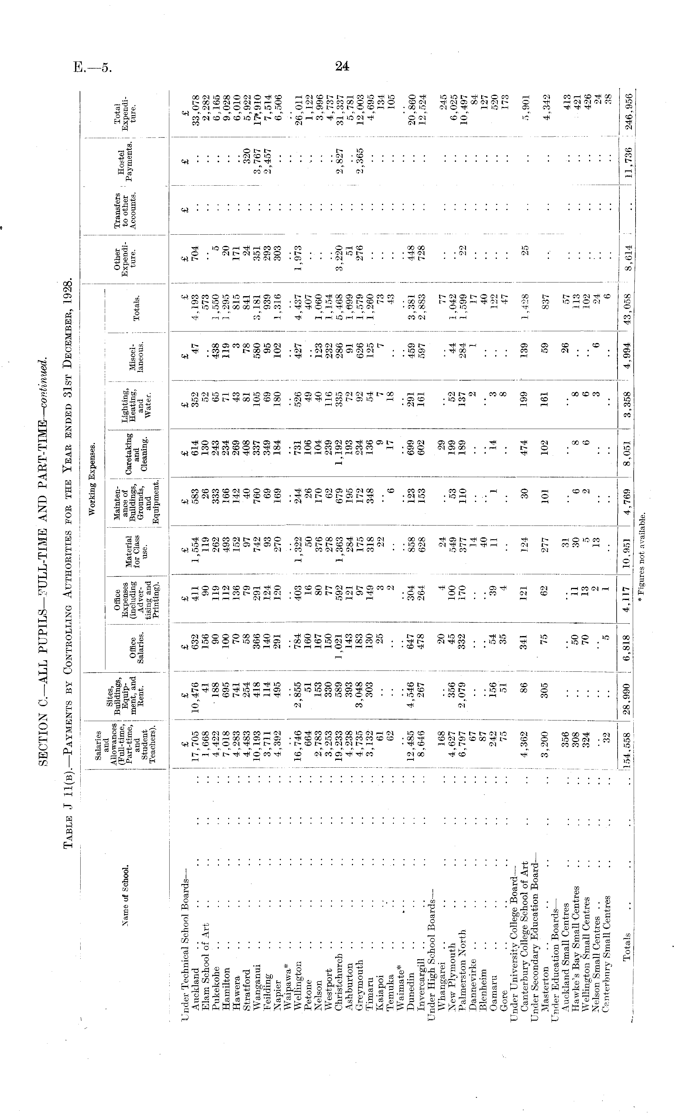 SECTION C.—ALL PUPILS—FULL-TIME AND PART-TIME—continued. Table J11(b).—Payments by Controlling Authorities for the Year ended 31st December, 1928.